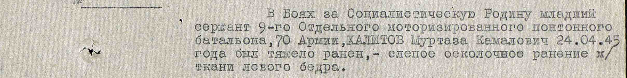 Халитов Муртаза Камалович - участник Великой Отечественной войны, 01.10.1926 г.р., младший сержант, воевал 2 Белорусский фронт, 65 армия 3 отдельный механизированный понтонно-мостовой батальон.