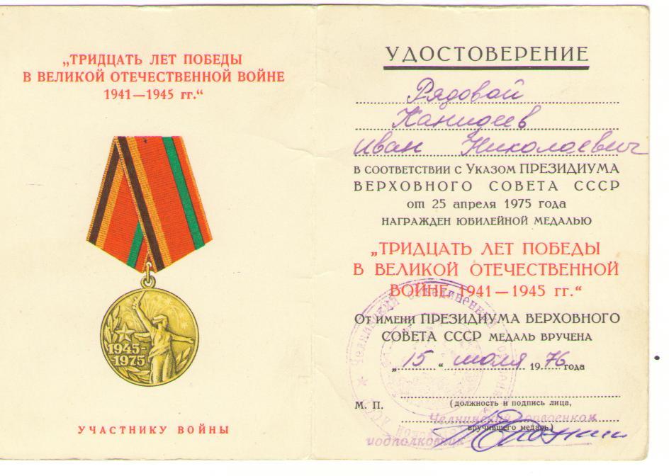 За проявленное мужество и героизм Иван Николаевич награжден медалями и орденом.