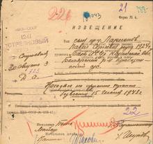 ЛАРИОНОВ Павел Сергеевич, 1924, д. Красный Баран. До призыва в армию работал в к-зе «Семеновод». Мобилизован Билярским РВК в авг. 1942. Красноармеец, 1241 СП 375 СД 21 А Центрального фронта, 6 гв. А Воронежского фронта. Учтён пропавшим без вести 15 июля 1943 у д. Лески, Беленихинский р-н, Курская обл., в ходе битвы на Курской дуге. Увековечен на братском захоронении в с. Лески, Прохоровский р-н, Белгородская обл.