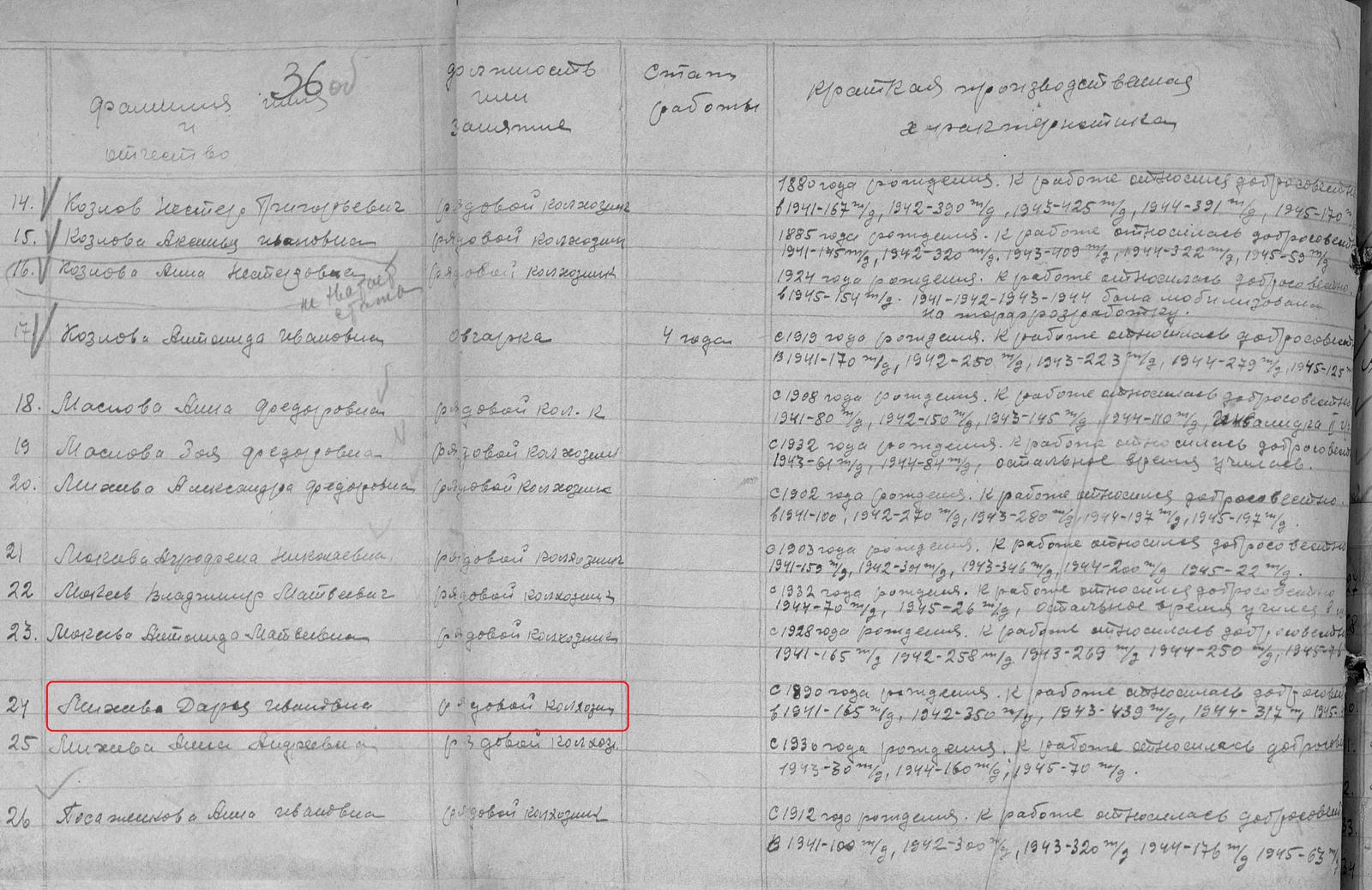Михеева Дарья Ивановна родилась в 1890 году. Место жительства: п. Елховка Ново-Шешминский район ТАССР. В годы Великой Отечественной войны работала в колхозе им. Ворошилова рядовой колхозницей. Награждена медалью "За доблестный труд в Великой Отечественной войне 1941–1945 гг." (Акт от 28 апреля 1947 г, фонд 3610, опись 2, дело № 325, лист 36).