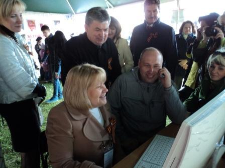 9 мая с 9.00 часов до 19.00 часов на стадионе Молодежный на Шишкинских прудах нами была выставлена палатка «Родные лица Победы». Сотрудники библиотек установили в ней компьютеры и работали целый день, знакомя всех желающих с проектом «Виртуальный музей Великой Отечественной войны РТ», а также осуществляли поиск сведений о родных и близких в других БД, в том числе «Подвиг народа», ОБД «Мемориал», «Память народа» и др., найденные документы сразу распечатывались и выдавались родственникам. К поиску обратилось около 80 елабужан и гостей города. Найдено информации на 132 участника войны, распечатано более 200 копий документов. Более 60 человек записалось в библиотеку.