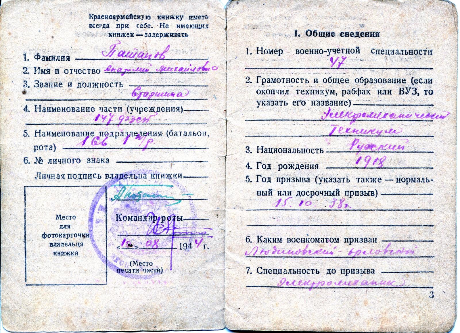 Призван обычным призывом 15 октября 1938 года Людиновским РВК Орловской области.