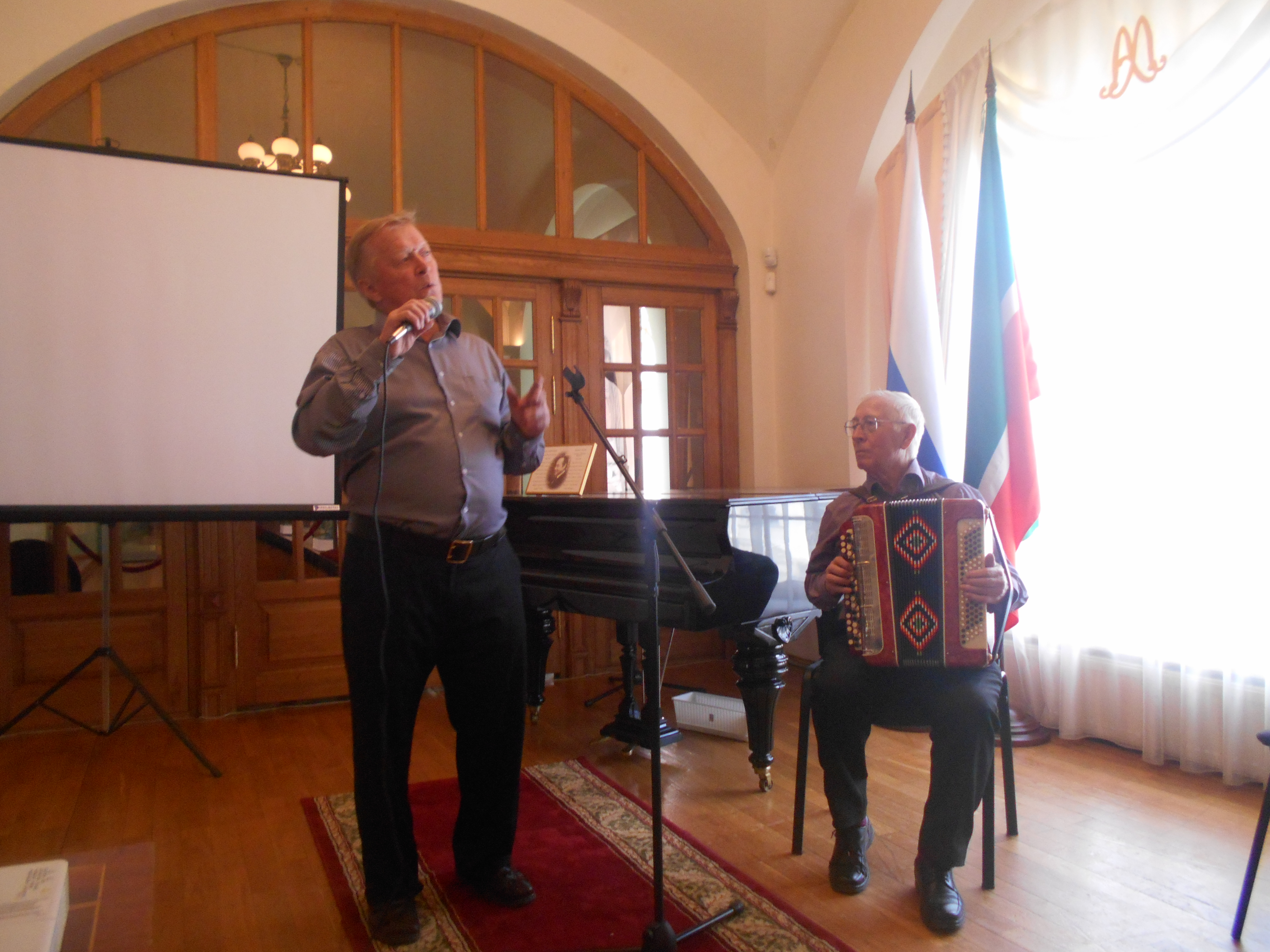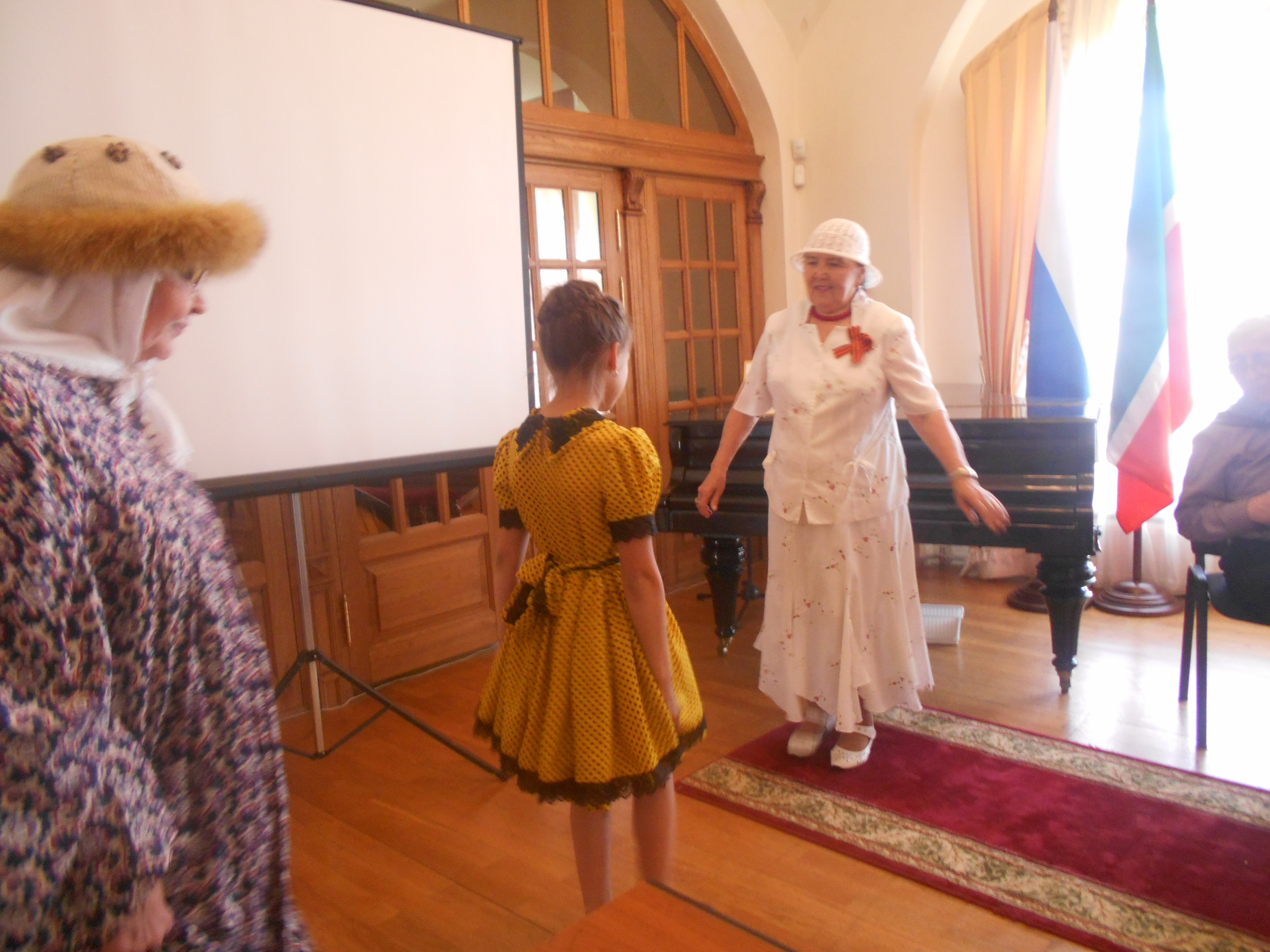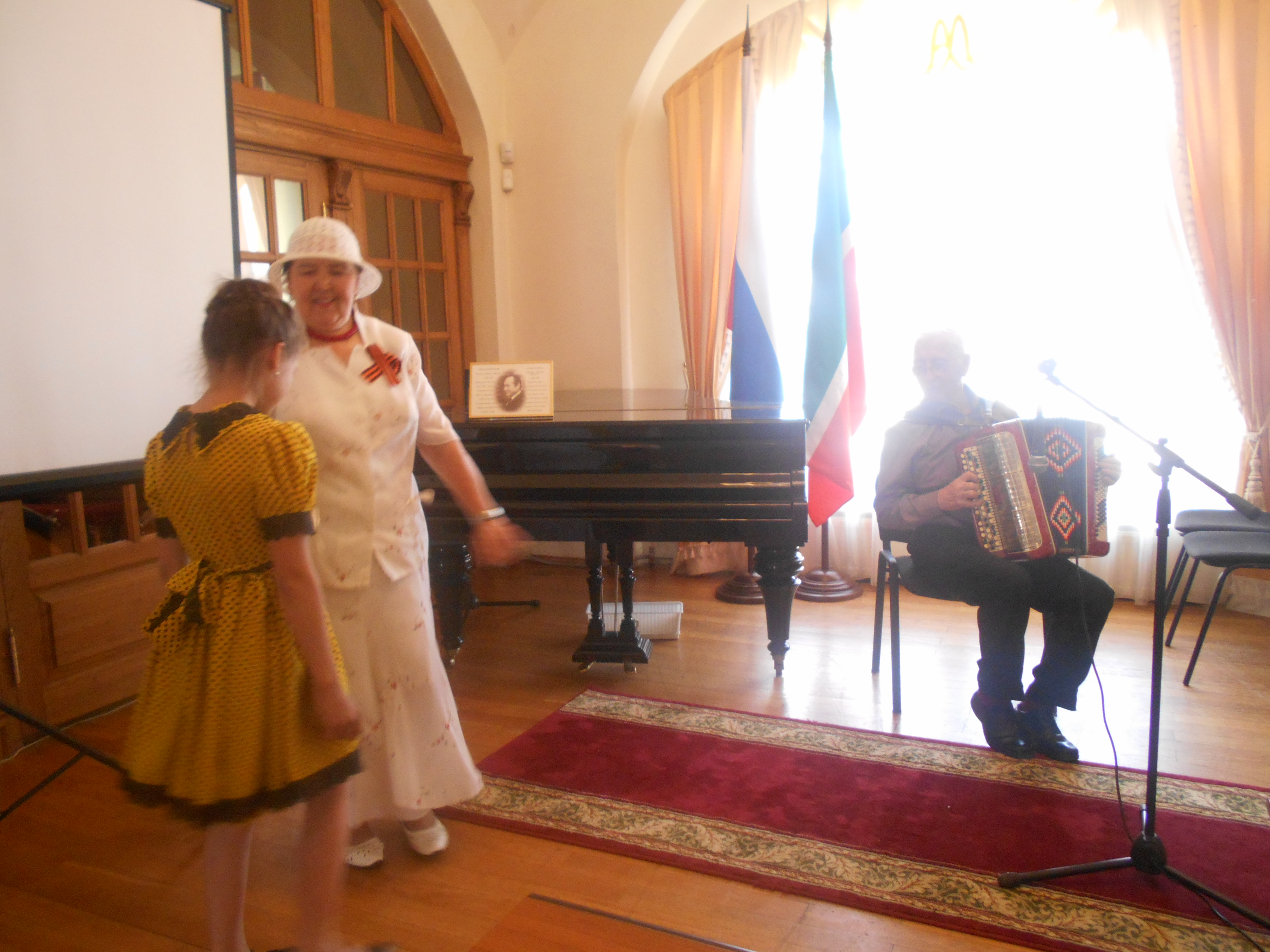 посвятили песни своим отцам, сражавшимся на фронте. Песни наполненные тоской и безграничной мелодичностью заполнили залы Национального музея, экскурсанты находившиеся на данный момент в музее, останавливались и завороженно слушали настоящие татарские песни тех далеких грозных лет, обучающие нас народной мудрости. В песнях говорилось о красоте духа и терпении простого солдата, защищавшим от врага свою семью, свою землю. Но не все же время грустить, гармонист Фарид Хусаинов, обладатель медали "За достижения в области культуры" заиграл татарскую плясовую и все пустились в пляс. Позже к выступающим присоединился мастер художественного свиста Вильямс Габдулхакович Ахмадуллин.