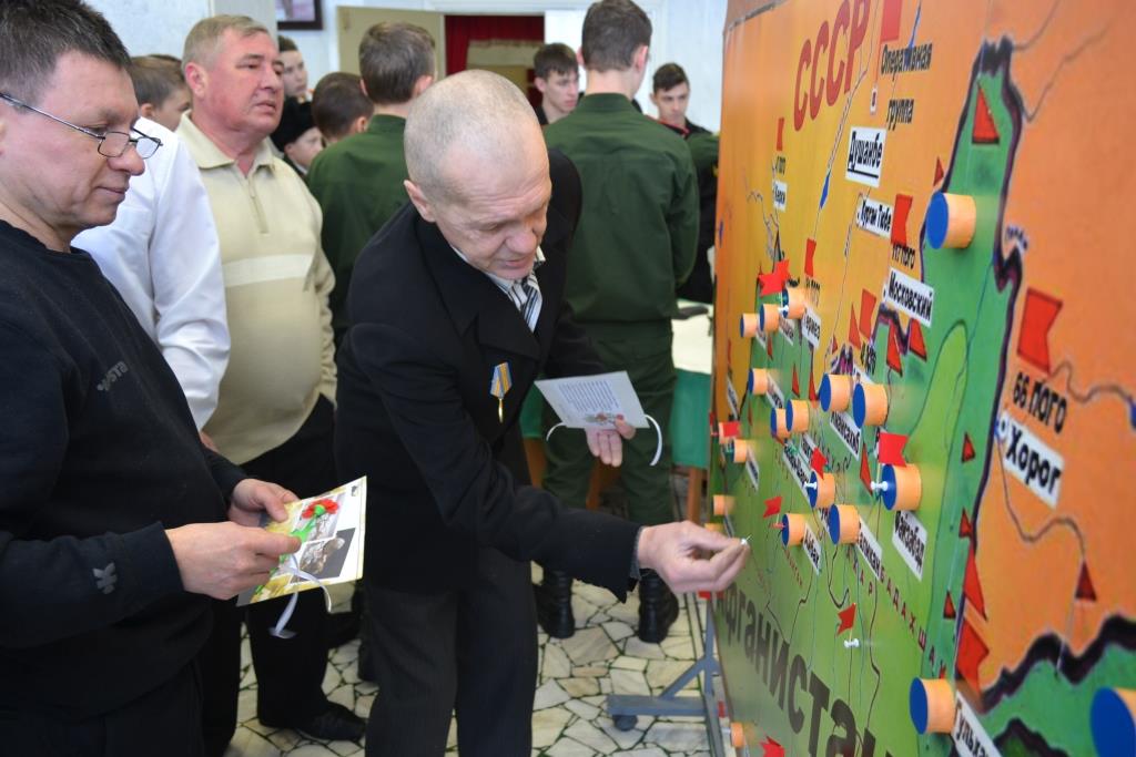 Воины-афганцы, пришедшие на выставку, на интерактивной карте Афганистана отмечали флажками места, где проходила их служба. Внимательно рассматривая планшеты с фотографиями, узнавали своих сослуживцев и боевых друзей. Держа в руках военную экипировку делились своими воспоминаниями друг с другом.
