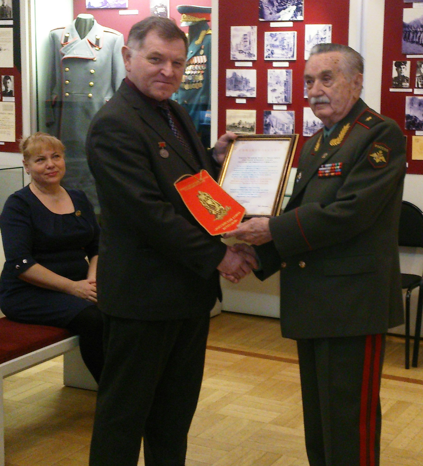 Вручил свидетельство председатель Республиканской общественной организации ветеранов (инвалидов) «Союз ветеранов Республики Татарстан» генерал-майор в отставке Ахат Гайнуллович Юлашев.