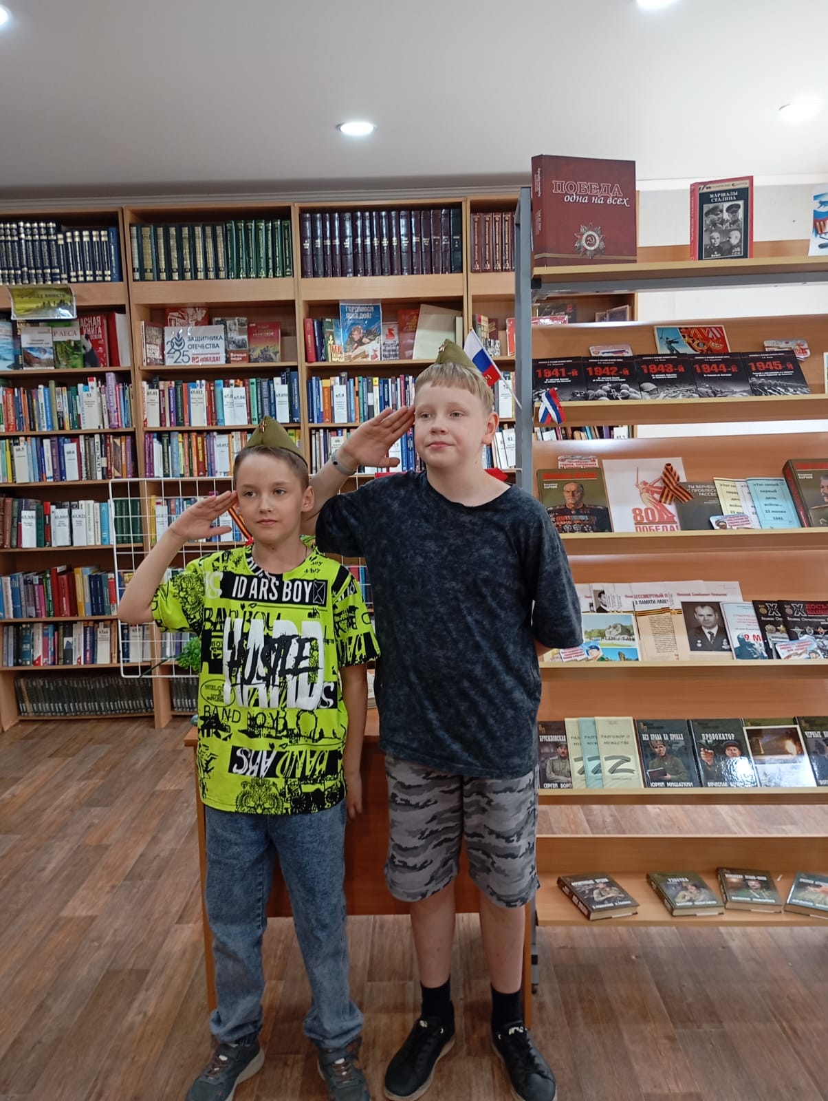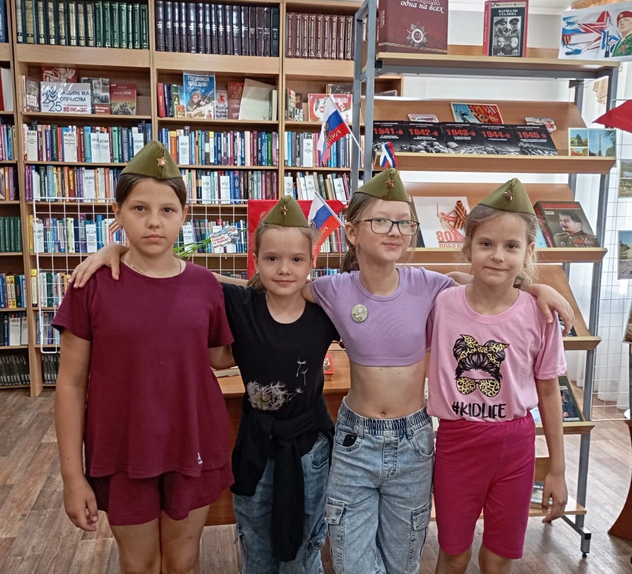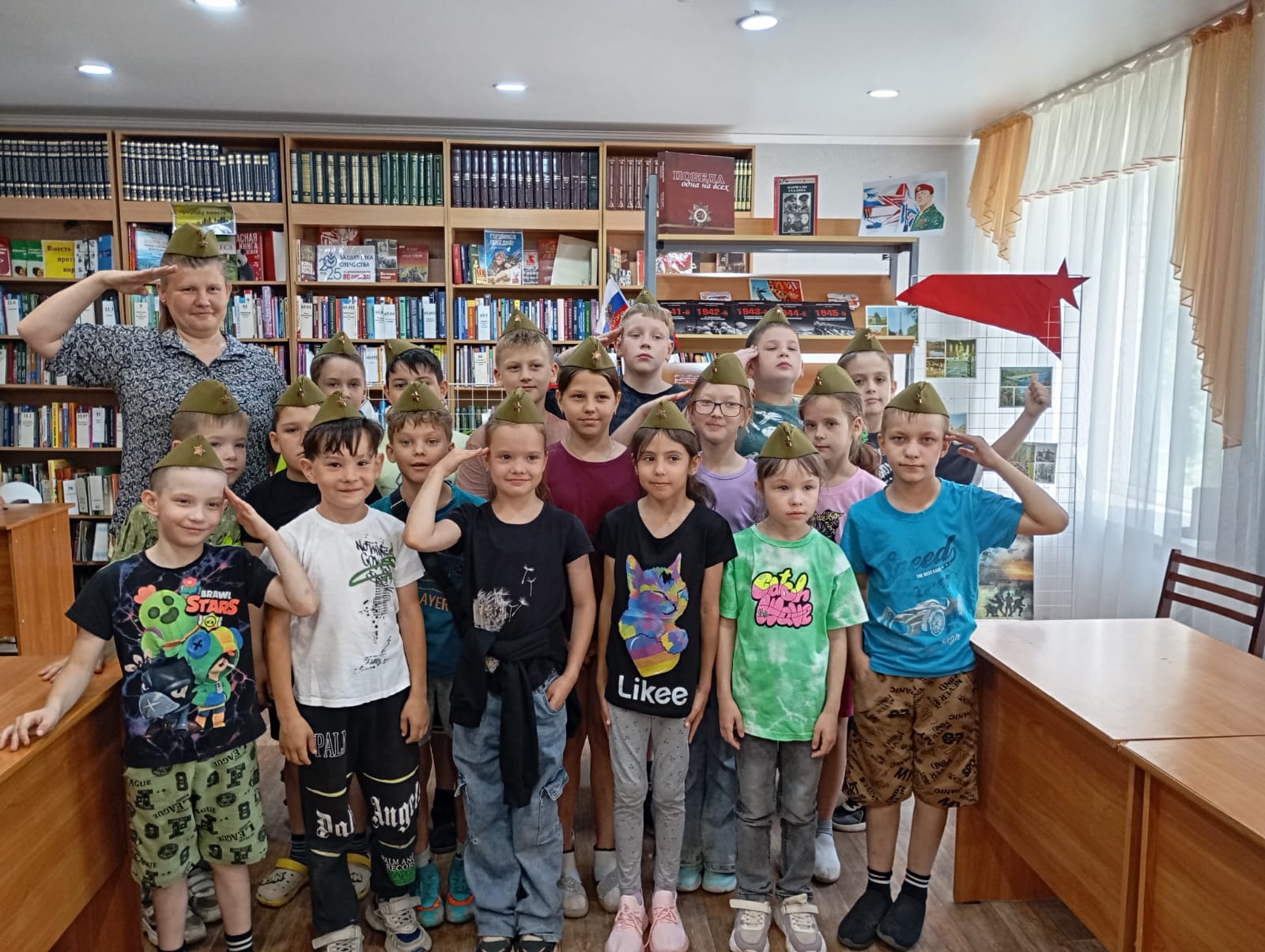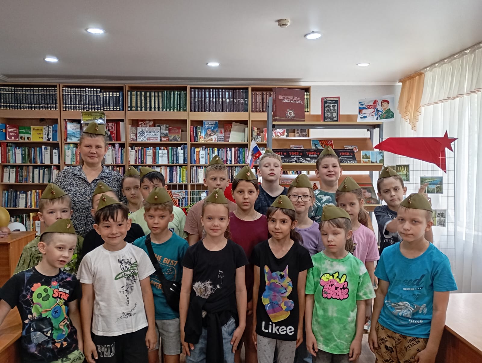 Для участников мероприятия была организована фотоссесия в военных головных уборах (пилотках).