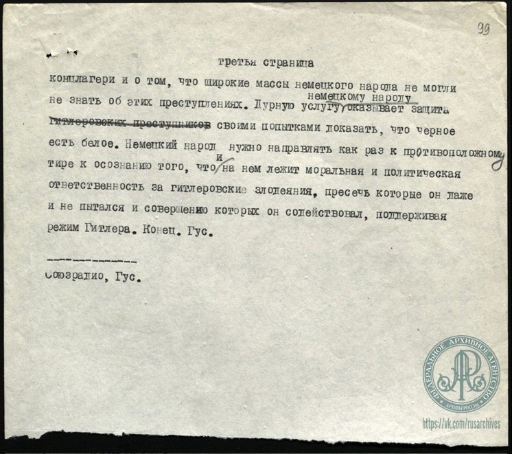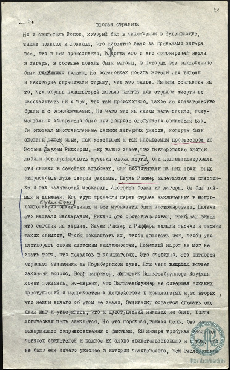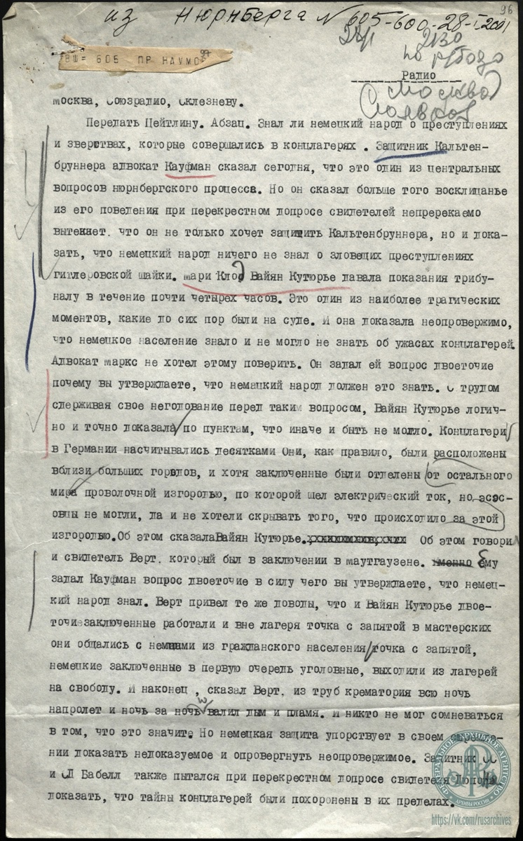 Гус М.С. Из Нюрнберга в Москву. Информация для радио. 28 января 1946 г. 21 час. 30 мин.
