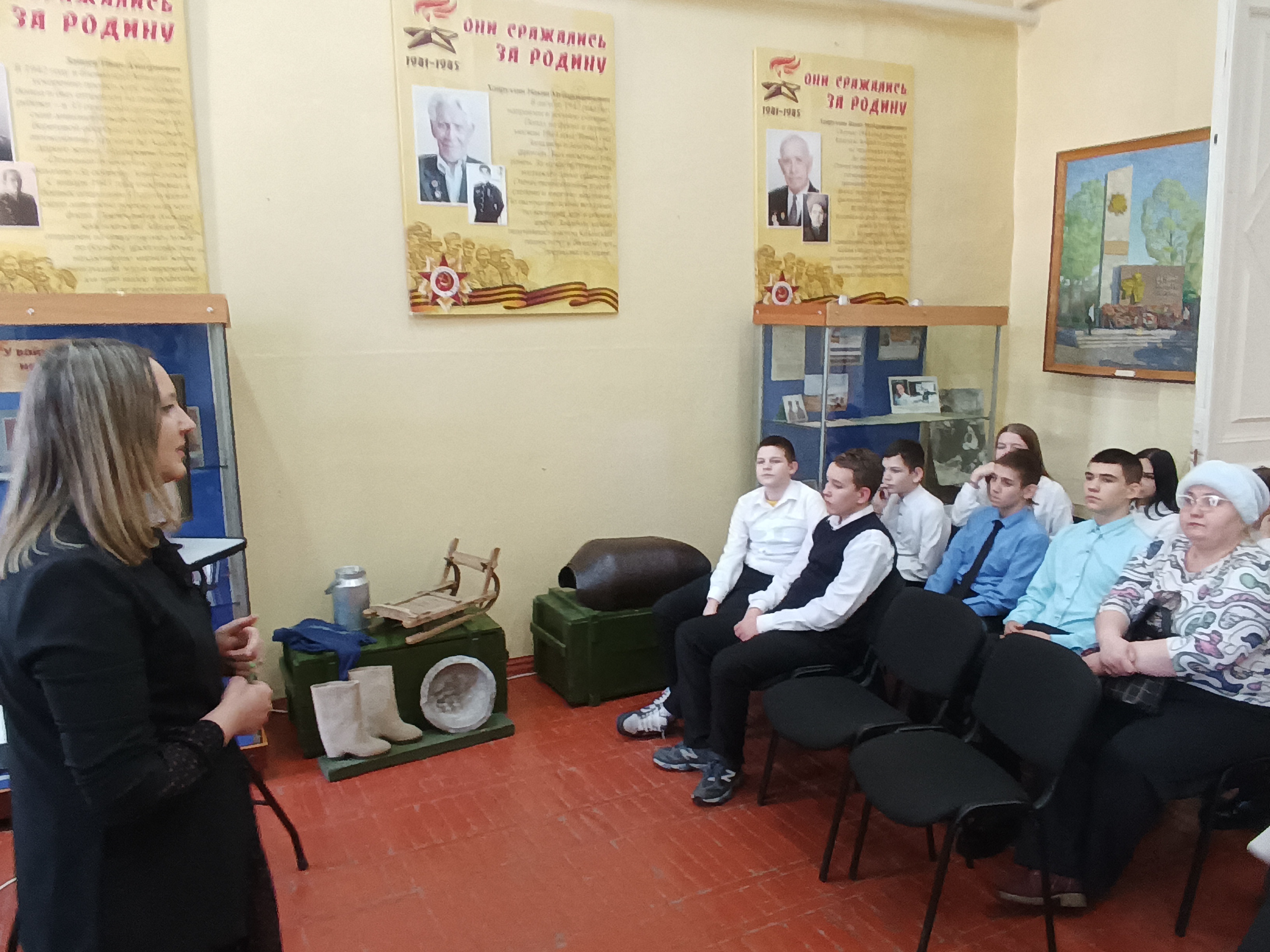 Ребятам был представлен эпизод из видеоинтервью с Александром Степановичем Кольцовым. Он родился в Ленинграде, но по воле судьбы стал чистопольцем. Александр Степанович рассказывал: «Когда началась война, мне было 8 лет, я должен был идти в первый класс. Проучился я примерно до половины октября. А потом приходим в школу – на втором этаже косяки, рамы, всё вылетело, а на первом только стёкла. Снаряд, оказывается, попал в простенок…