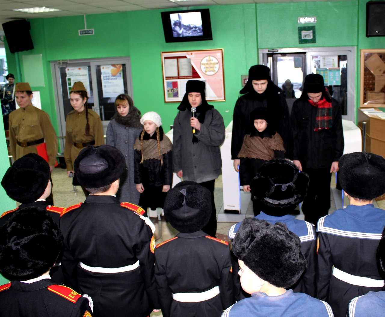 В память о тех страшных событиях, о мужестве ленинградцев в годы блокады активисты поискового отряда "Кадет" выступили перед учащимися Кадетской школы №82 с агитбригадой "Дети Ленинграда"