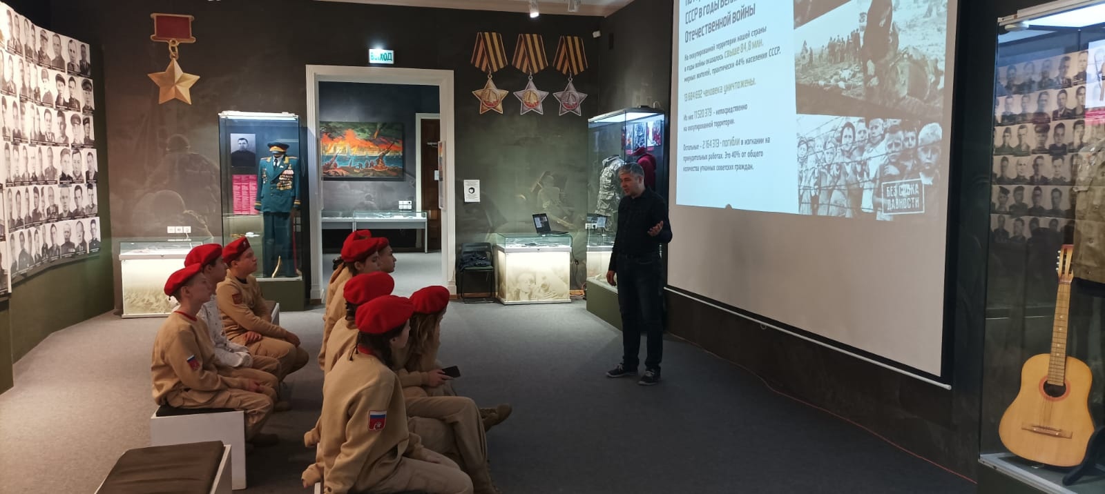 После церемонии возложения, бойцы поискового отряда из с. Рождествено посетили лекцию "Без срока давности" в Музее-мемориале Великой Отечественной войны.
