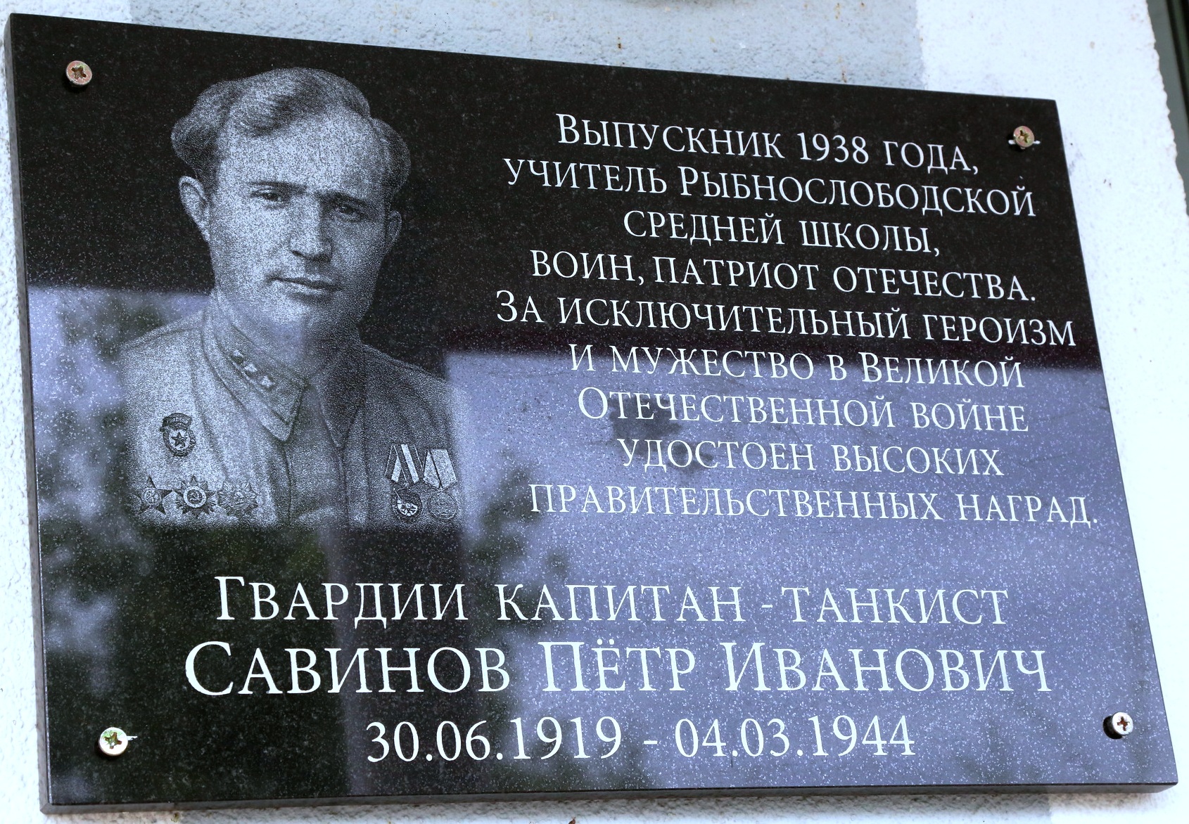 5 сентября 2015 г. на гимназии с.Рыбная Слобода открыта мемориальная плита памяти Петра Ивановича Савинова