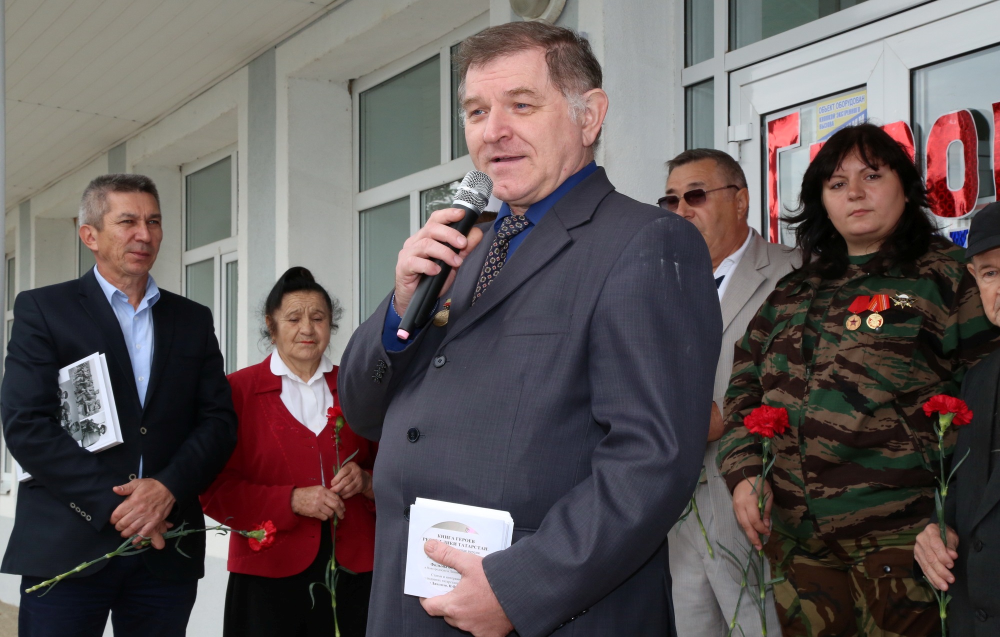 На открытии присутствовали родственники героя, руководство Рыбнослободского района, руководители ветеранского движения республики, музейщики, учителя и гимназисты.