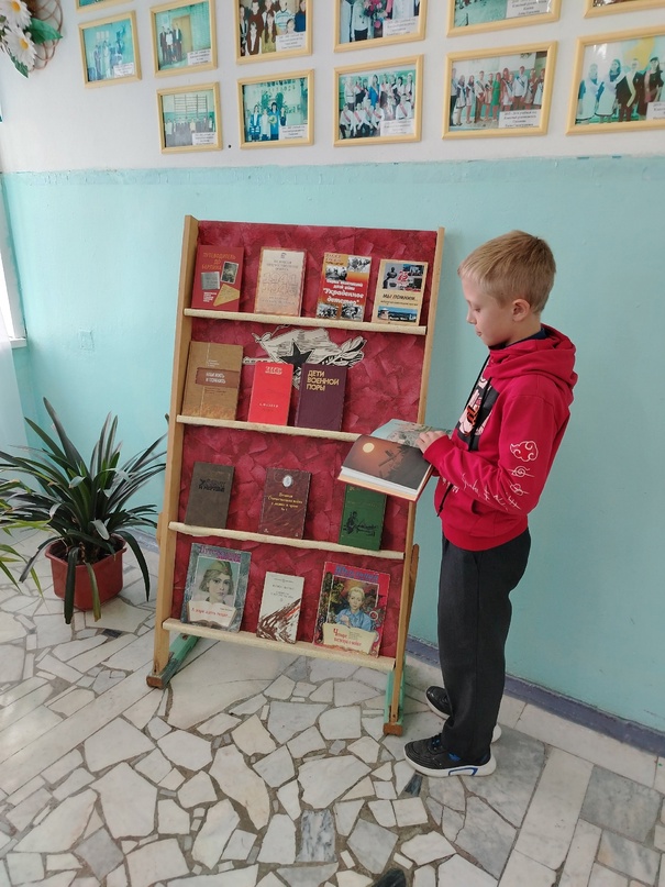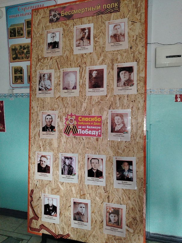В фойе школы оформлены книжная выставка и выставка макетов военной техники, «Стена Памяти», на которой размещены портреты участников Великой Отечественной войны и тружеников тыла – родных и близких людей учеников и сотрудников школы.