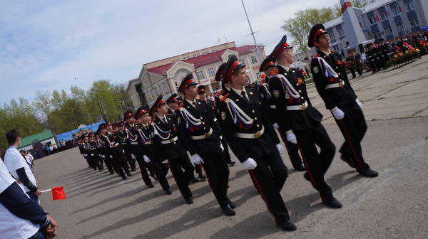Он начался с торжественного шествия, право открыть которое было предоставлено воспитанникам кадетской школы-интерната имени Павла Алексеевича Карпова, полного кавалера орденов Славы. Кадеты внесли на площадь флаги Российской Федерации, Республики Татарстан, Спасского муниципального района, знамя Победы. Затем по площади прошли участники акции «Бессмертный полк» с портретами ветеранов войны, спортсмены, студенты техникума отраслевых технологий, представители подразделений по чрезвычайным ситуациям, казачьего войска, медицинские работники.