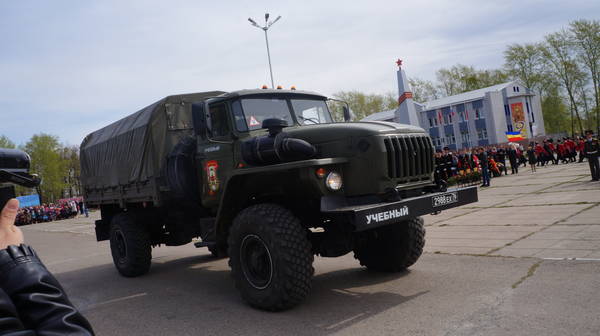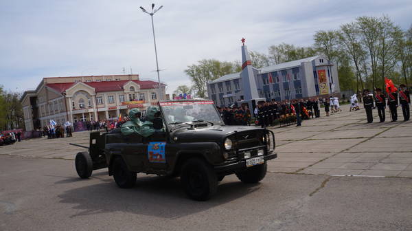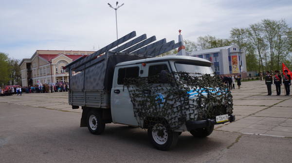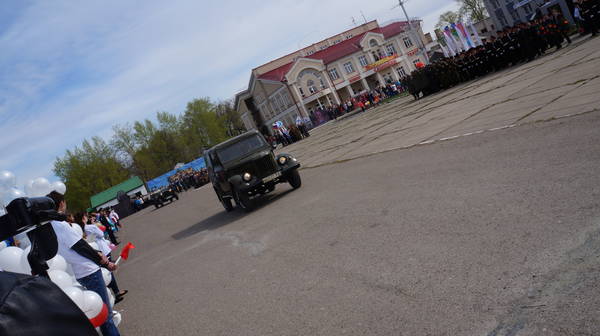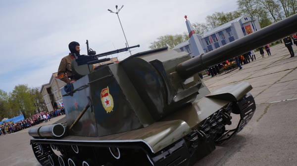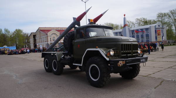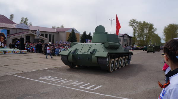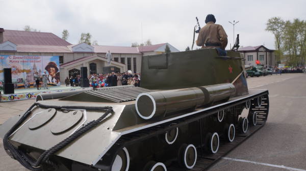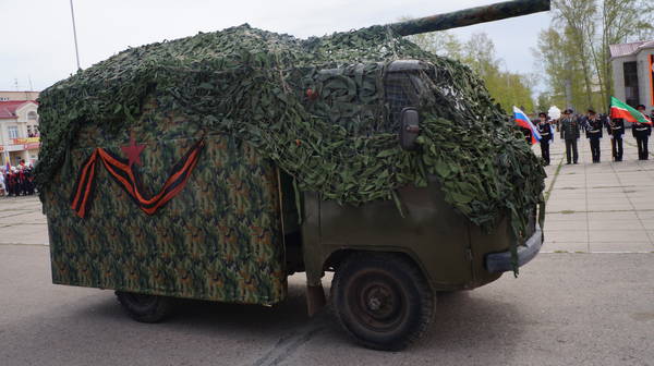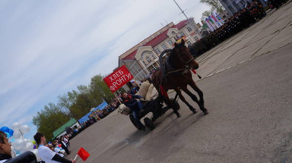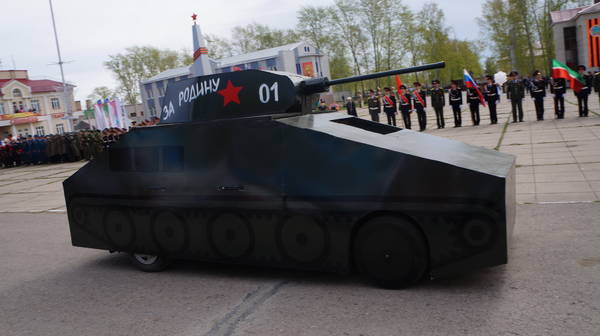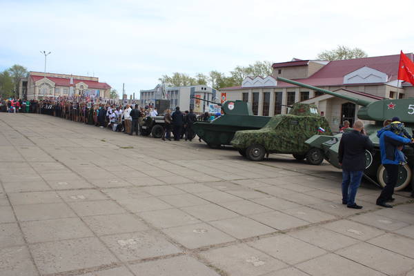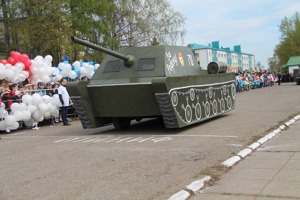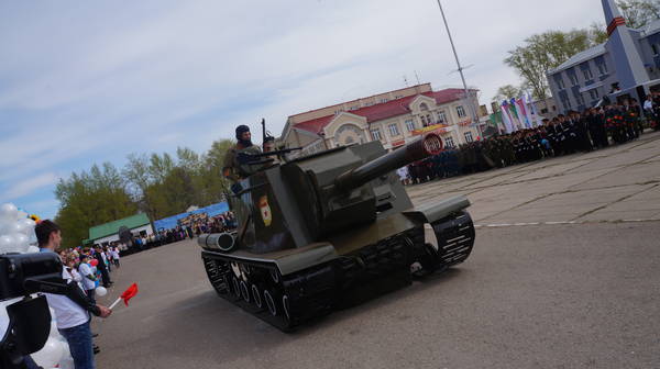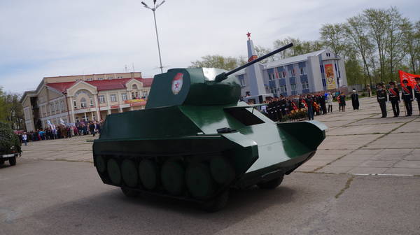 Парад продолжился демонстрацией макетов боевой технеики, подготовленной к празднику коллективами организаций, предприятий и общественными формированиями. По площади под аплодисменты собравшихся проехали легендарные ГАЗ-67, ГАЗ-64, ракетно-зенитные установки, танки, бронемашины, артиллерийские пушки, санитарные машины, патрульно-разведывательный катер, реактивные установки «Катюша», лошадиная повозка с надписью «Хлеб – фронту!», тачанка и т.д.