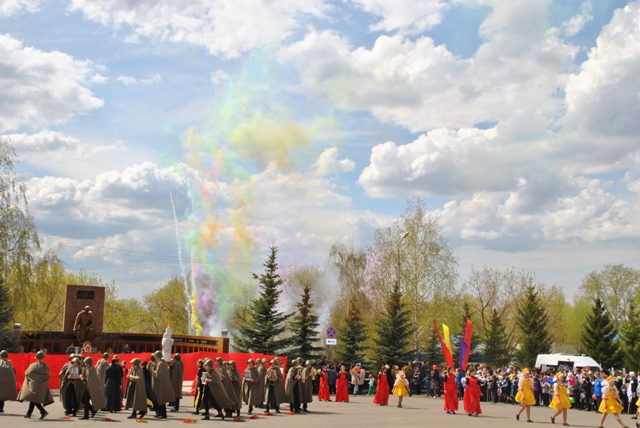 Праздник продолжился музыкальным театрализованным представлением, подготовленным школами и отделом культуры, которое развернулось на всем широком просторе площади перед Вечным огнем. Красочное, берущее за душу действие никого не оставило равнодушным. Все в сопровождении костюмированных хореографических композиций.