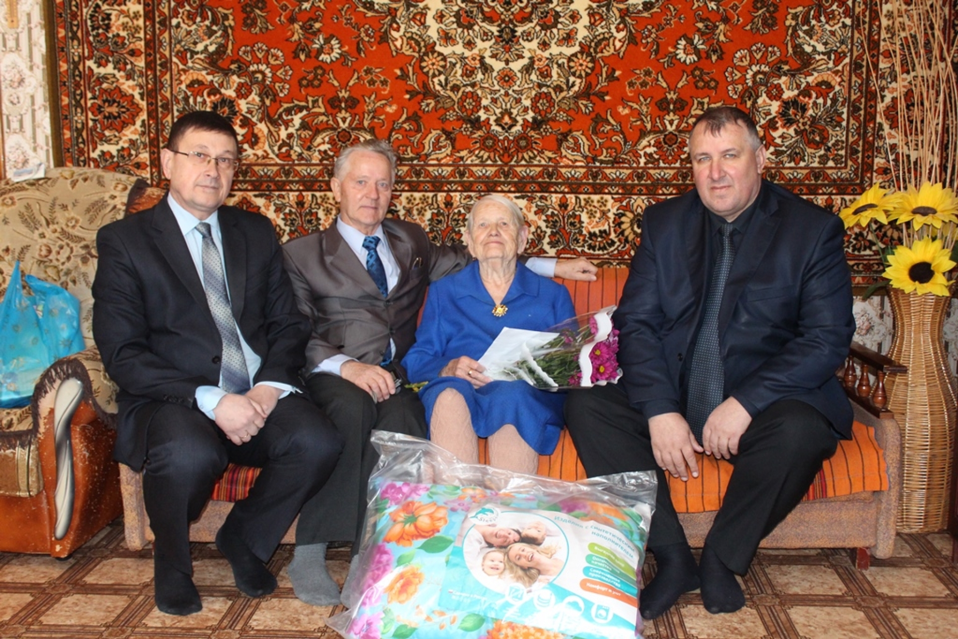 18 марта отметила 90-летие жительница Лаишева, труженица тыла Аникина Антонина Ивановна. Она всю жизнь работала швей. Вырастила двоих детей. Ее радуют трое внуков и четверо правнуков. Ее поздравили Первый заместитель руководителя Исполкома Лаишевского муниципального района Андрей Карсалов, председатель Совета ветеранов Рашат Булатов и руководитель исполкома г. Лаишево Владимир Яковлев. Они вручили подарки от имени главы района Михаила Афанасьева, а также поздравление Президента России Владимира Путина. Антонина Ивановна уверена, что дожила до столь преклонного возраста, потому что всю жизнь трудилась. Вставала в пять утра, ложилась в 10. Все успевала: и на работе, и дома, и детей воспитывала. В огороде всегда образцовый порядок - ни травинки не было. И сейчас дома не сидит. Выходит на улицу, старается двигаться. Вспоминает, как сложно было во время Великой Отечественной войны. Работали в колхозе. Трудились для фронта, для Победы. Дома держали скотину, за счет этого и выжили в суровые годы.