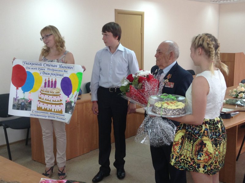 Поздравил юбиляра от имени Президента Российской Федерации Владимира Путина, руководителя Исполнительного комитета Наиля Магдеева и от себя лично глава администрации Комсомольского района Владислав Гаврилов. Степан Иванович известен в городе своей активной общественной деятельностью, поэтому зал администрации был полон от желающих поздравить его в этот праздничный день. Поздравили его коллеги из Совета ветеранов города - Рафик Имайкин, председатель общественной организации отметил его огромную работу по патриотическому воспитанию молодежи. Прозвучали поздравления от депутата Государственного Совета РТ Владимира Бестолкова, от коллег предприятия «Камгэсэнергострой», руководителей Поста №1, реабилитационного центра для детей «Асылташ», молодежного центра «Заман», от многочисленных друзей. Самые теплые и трогательные слова поздравления были от супруги и детей Степана Ивановича, они отметили, что гордятся главой семьи, которого знают и уважают в городе.