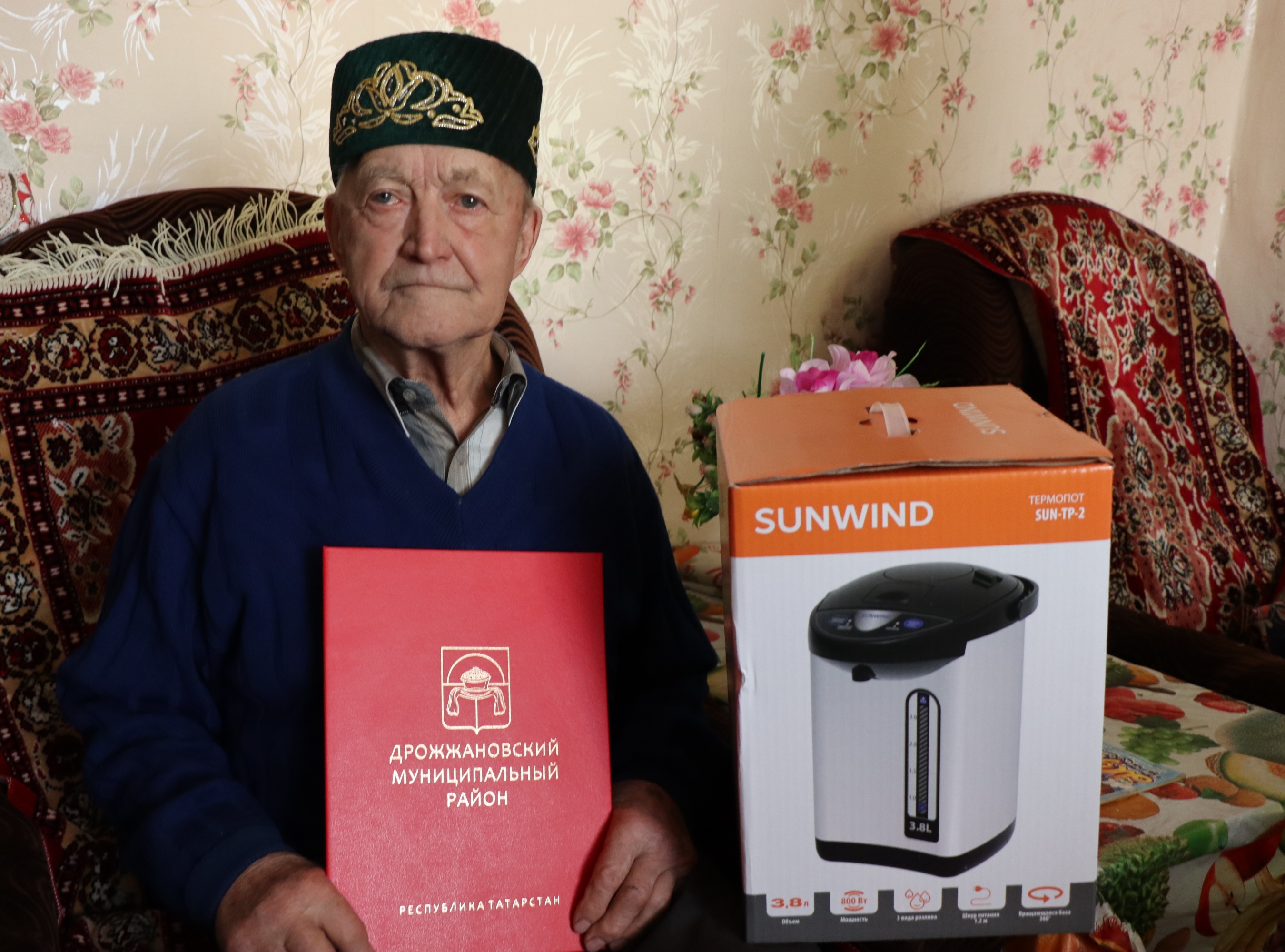 7 декабря 2022 года, уважаемому долгожителю Дрожжановского района из села Старое Шаймурзино Физханову Адельзяну Ахметзяновичу исполнилось 90 лет. По случаю знаменательной даты ветерана труда поздравил от имени главы района его заместитель Алексей Ярухин. Вручил подарки, поздравления, пожелал благодатной старости и здоровья.