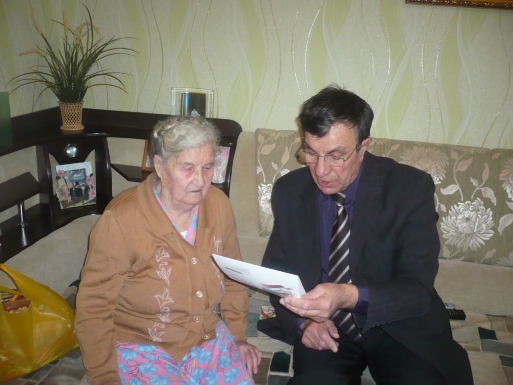 19 февраля свой 90- летний юбилей отмечала Юртаева Мария Никифоровна. В день юбилея поздравить Марию Никифоровну прибыли председатель районного Совета ветеранов Николай Глазунов и представитель отдела социальной зашиты. Марии Никифоровне вручили поздравительную открытку Президента Российской Федерации Владимира Путина, поздравление и подарок от главы Алексеевского муниципального района Владимира Константиновича Козонкова. Гости пожелали юбилярше долгих лет жизни, здоровья заботы и любви ближних.