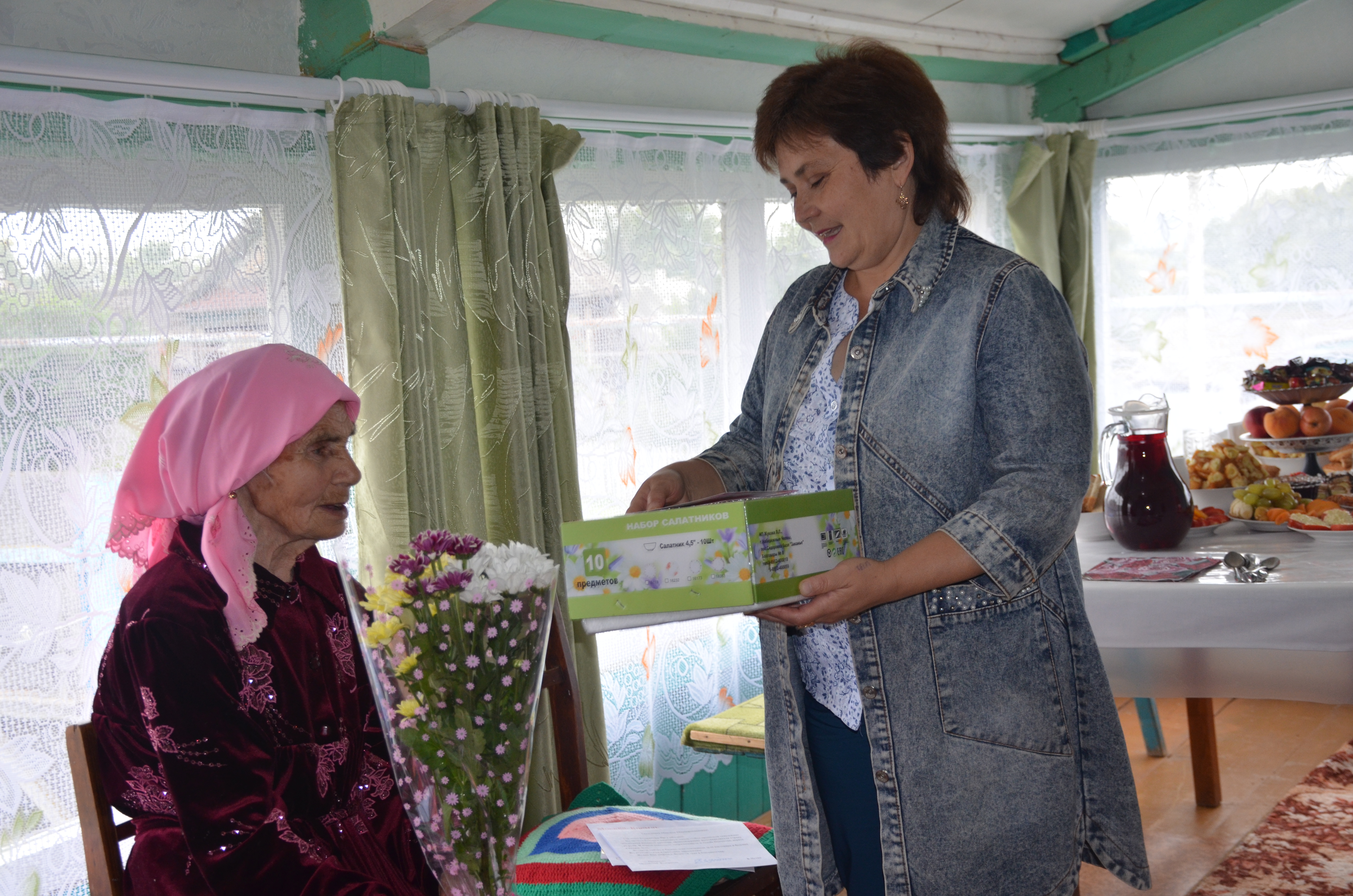 Гости пожелали юбиляру крепкого здоровья, долгих лет жизни, внимания и заботы близких ей людей, вручили поздравительные открытки от имени Президента Российской Федерации Путина Владимира Владимировича, главы Агрызского муниципального района Макарова Валерия Владимировича и памятный подарок.