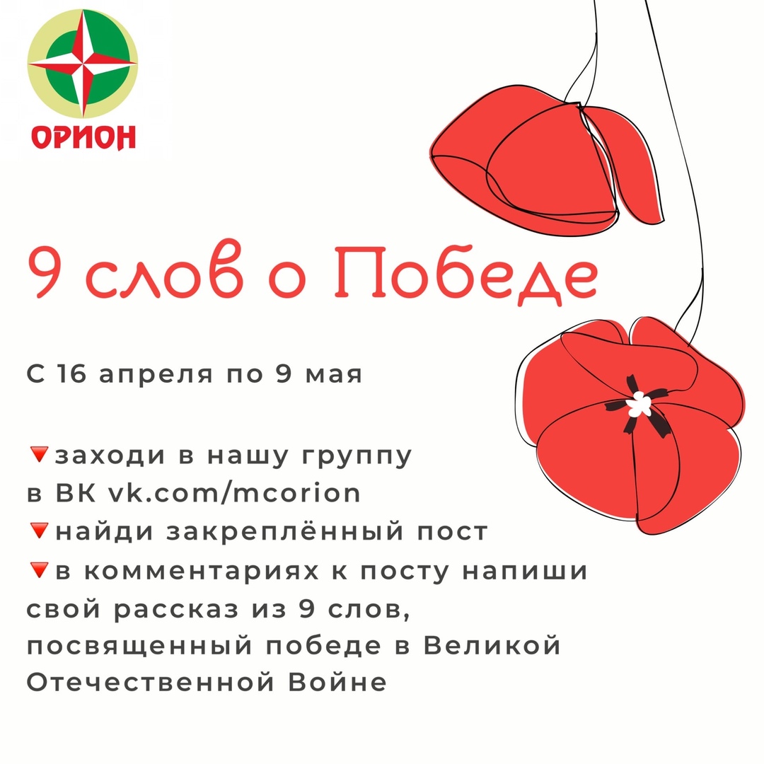 С 16 апреля по 9 мая молодёжный центр «Орион» запускает акцию «9 слов о Победе».