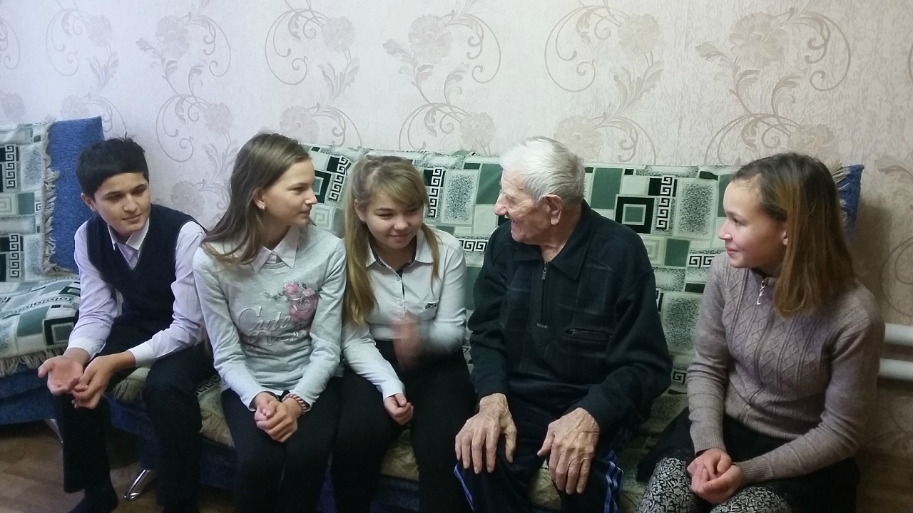 педагог МБУ «Центр «Ватан» Турук Н.Н. вместе с воспитанницами патриотического объединения «Наследники», учащимися 7б класса МБОУ «Гимназия №2», посетили ветеранов Великой Отечественной войны Никулина Николая Кирилловича и Покровского Геннадия Александровича. Школьники поздравили бывших воинов с Днем Героев Отечества, преподнесли им в подарок цветы, пожелали здоровья. Ветераны вспомнили военные годы, друзей-однополчан.