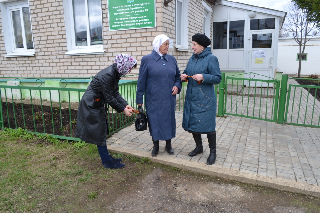 Сотрудники Музея истории и культурного наследия Агрызского муниципального района РТ присоединились к Всероссийской акции «Георгиевская ленточка». Всем желающим прикрепляли ленту – условный символ воинской славы. Этот символ - выражение нашего уважения к ветеранам, дань памяти павшим на поле боя, благодарность людям, отдавшим всё для фронта. Эту акцию мы проводили впервые, и были очень рады тому, как она была поддержана людьми. Никто не отказывался, просили по несколько лент. Но мы не ожидали такого интереса, поэтому ленточки наши очень быстро закончились. Планируя следующую акцию, мы постараемся сделать её более масштабнее. Спасибо всем за поддержку и участие. Давайте и впредь не будем равнодушными к нашему прошлому и будущему.