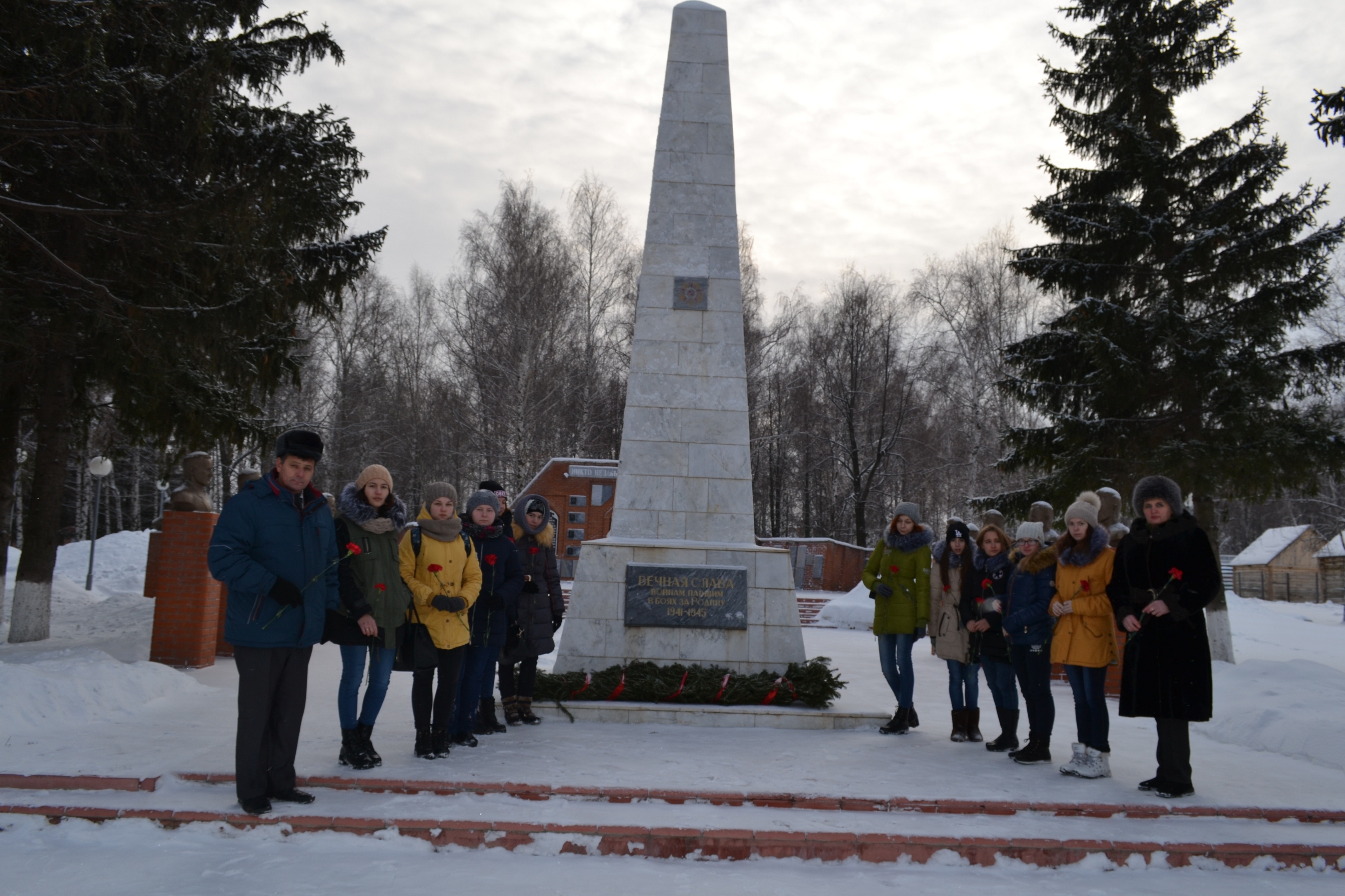 9 декабря сотрудники музея совместно со студентами 13 группы сельскохозяйственного техникума (руководитель Сагиров Ф.Г.) провели акцию «Красная гвоздика», возложив к бюстам Героев Советского Союза и полных кавалеров ордена Славы – наших земляков, цветы, как дань великой памяти героическим людям.