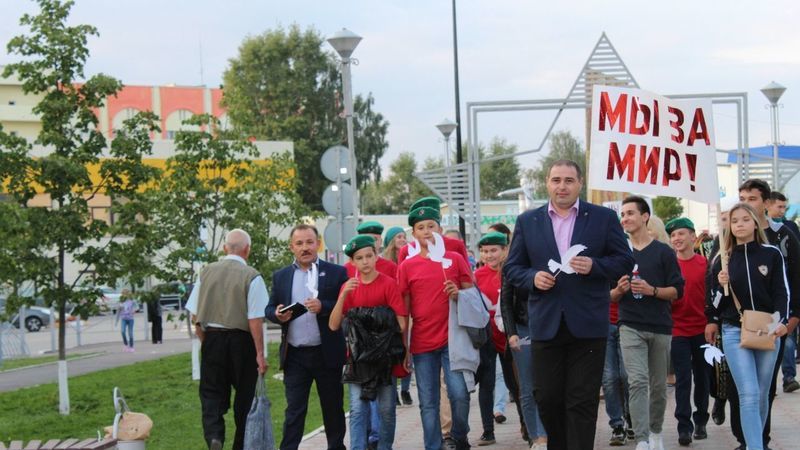 Ее участниками стали школьники, юнармейцы, представители молодёжного крыла “Единой России”, общественности и творческой интеллигенции. У каждого в руках был символ мира – бумажный голубь. Участники акции прошли по аллее Героев, местом митинга стала площадь Памяти, мемориал Вечный огонь.