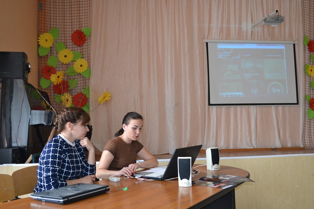 Аудиторию для общения составили педагоги и учащиеся ТСОШ№1 им. Героя Советского Союза П.С. Ханжина. Встреча началась с рассказа сотрудников музея о празднике и о музеях разной направленности, в первую очередь, о нашем краеведческом музее в Тетюшах, о его истории, фонде и о задачах и проблемах сегодняшнего дня. Основной темой разговора стала проводимая музейщиками акция «Мы пишем летопись войны…». Краткий экскурс о вкладе тетюшан в великую Победу, основанный на самых ярких, эмоциональных эпизодах, претворял начало акции. Музейные работники рассказали участникам о Виртуальном музее Великой Отечественной войны Республики Татарстан, истории его создания, о работе сайта и Тетюшского Корпункта. В режиме онлайн учащихся удалось познакомить со всеми разделами сайта и даже попробовать отыскать информацию о родственниках присутствующих.