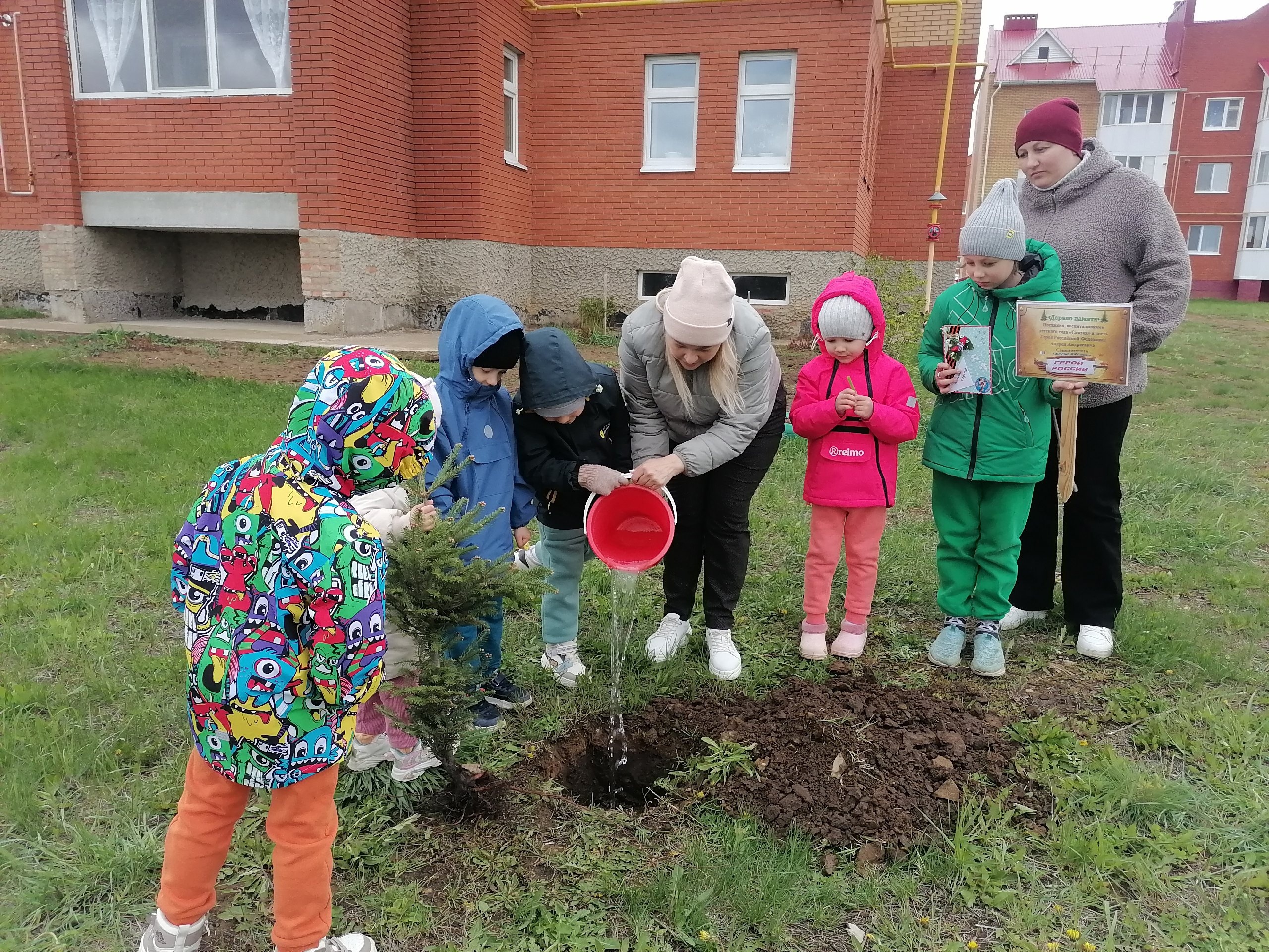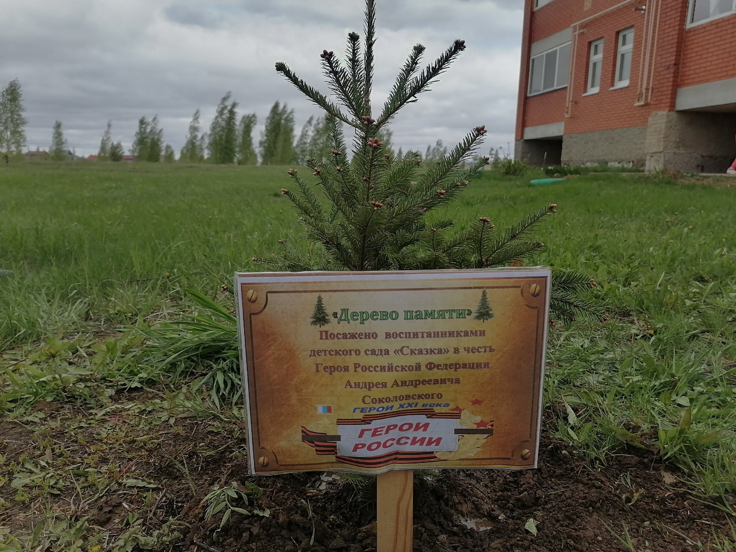 Воспитанники старшей группы детского сада «Сказка» приняли участие в акции «Сад памяти». Вместе с Сибгатуллиной Евгенией Андреевной, сестрой Героя, высадили у родительского дома именное «Дерево памяти» в честь Героя Российской Федерации Андрея Андреевича Соколовского. Это не просто дерево - это живая память о подвиге Героя, отдавшего свою жизнь за Родину, это - символ жизни, которая продолжается, и надежды на мирное будущее.