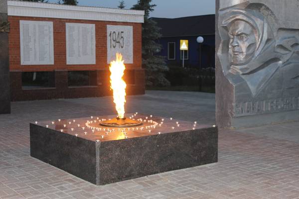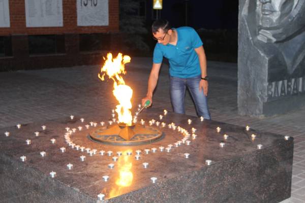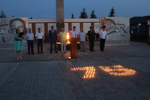 В рамках акции были зажжены свечи цифрой 75. Именно столько лет прошло, со дня наступления фашистов на нашу землю. Вечная память наших героев была почтена минутой молчания и залпом.