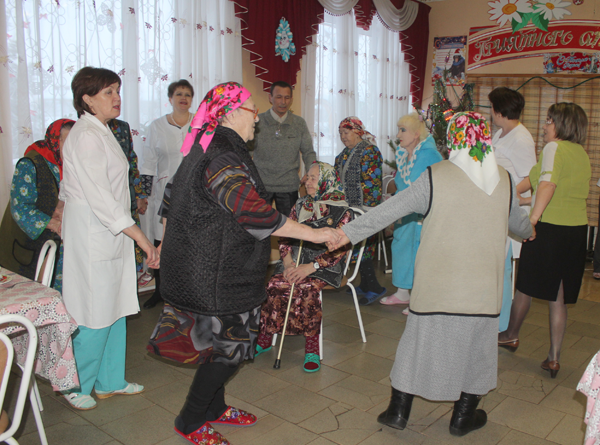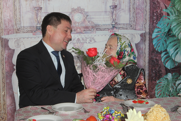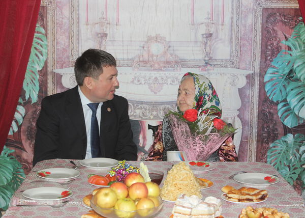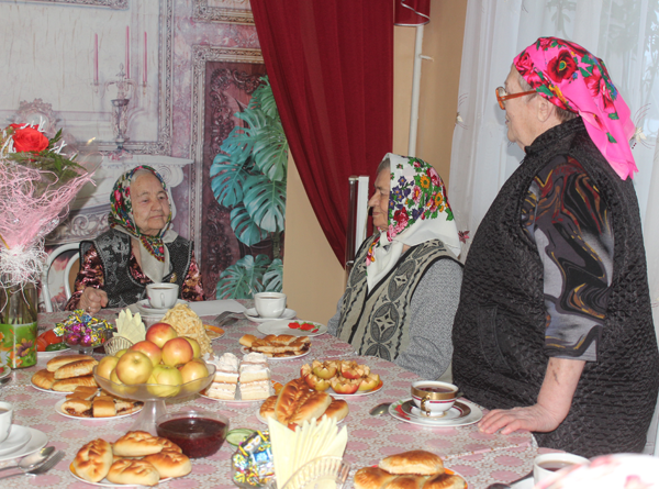 Еще один юбиляр – Халима Харисовна сегодня живет в Нурлатском доме для инвалидов и престарелых. Родом она из Алькеевского района, здесь уже около 15 лет живет, став одной из любимых членов коллектива. Сегодня с утра она принимает поздравления. Сначала родные приехали поздравить. Затем приняла поздравления главы района. А в доме для престарелых к юбилею Халимы Харисовны накрыли праздничный стол, а для гостей подготовили программу, в которую включили игры, песни и поздравления.