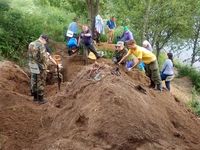 Бойцы лагеря подняли останки 25 воинов-красноармейцев, два бойца были опознаны.