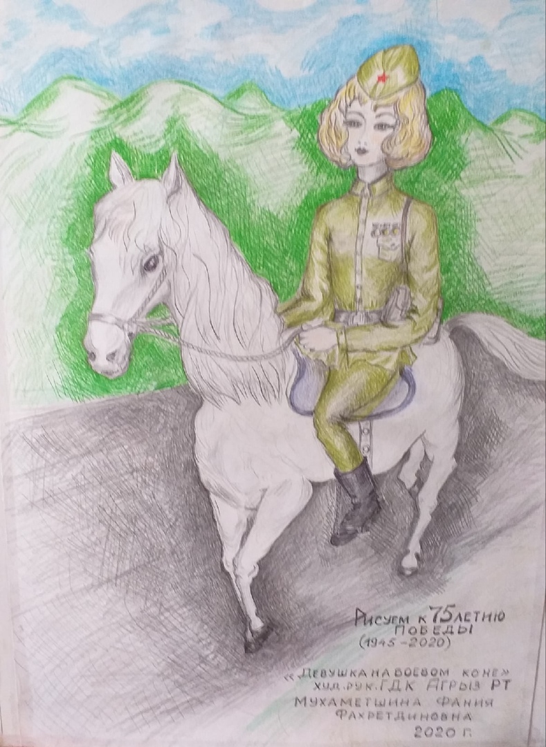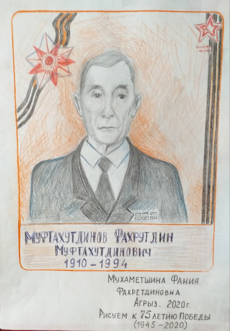 - В преддверии Великой Победы рука сама хочет творить, - признается Фания апа. Рождаются картины на тему войны, народного мужества, мира - главной ценности на земле. Что-то я просто перерисовываю, а есть образы, которые рождаются в моем воображении. Вот создала около десятка рисунков. Самый дорогой среди них - портрет моего папы, - говорит Фания апа.