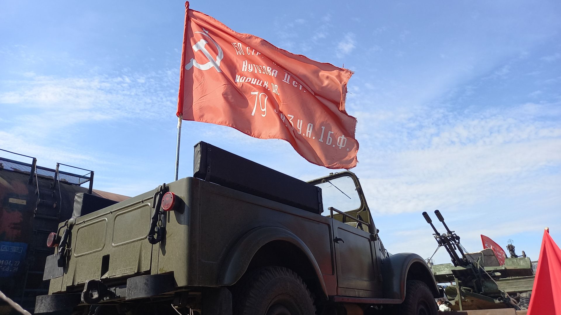 Клуб военно-патриотического воспитания г. Самары предоставил экспонаты: военную технику и оружие времен Великой Отечественной войны.
