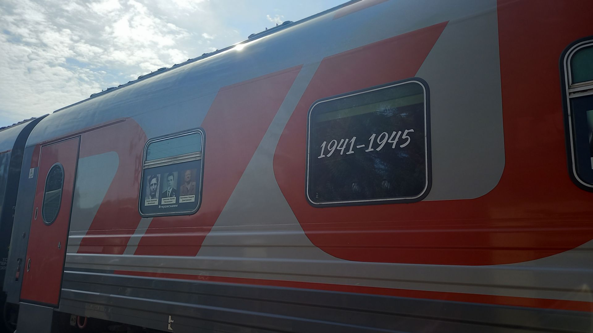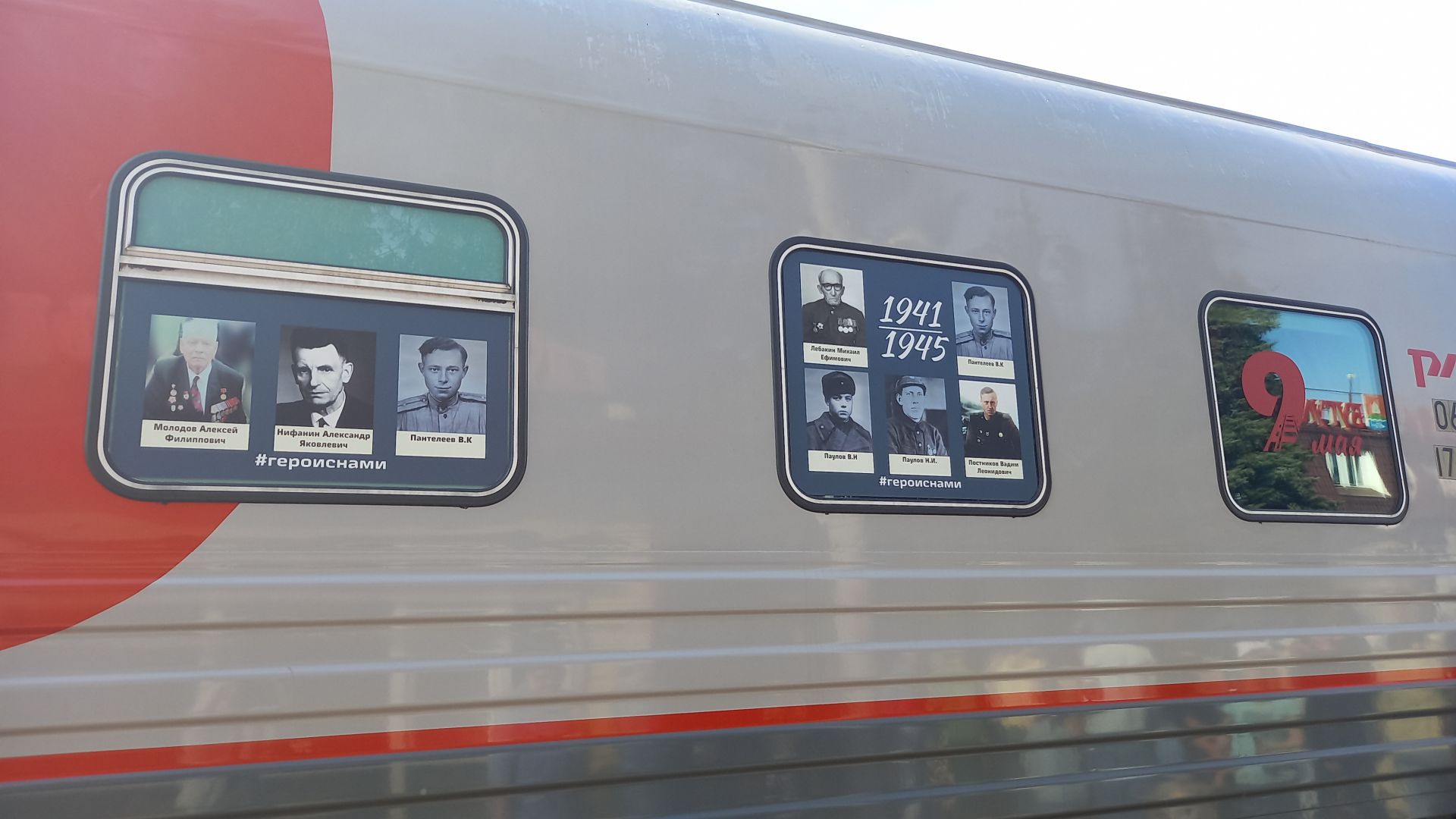На пассажирских вагонах поезда фотографии героев «Бессмертного полка».