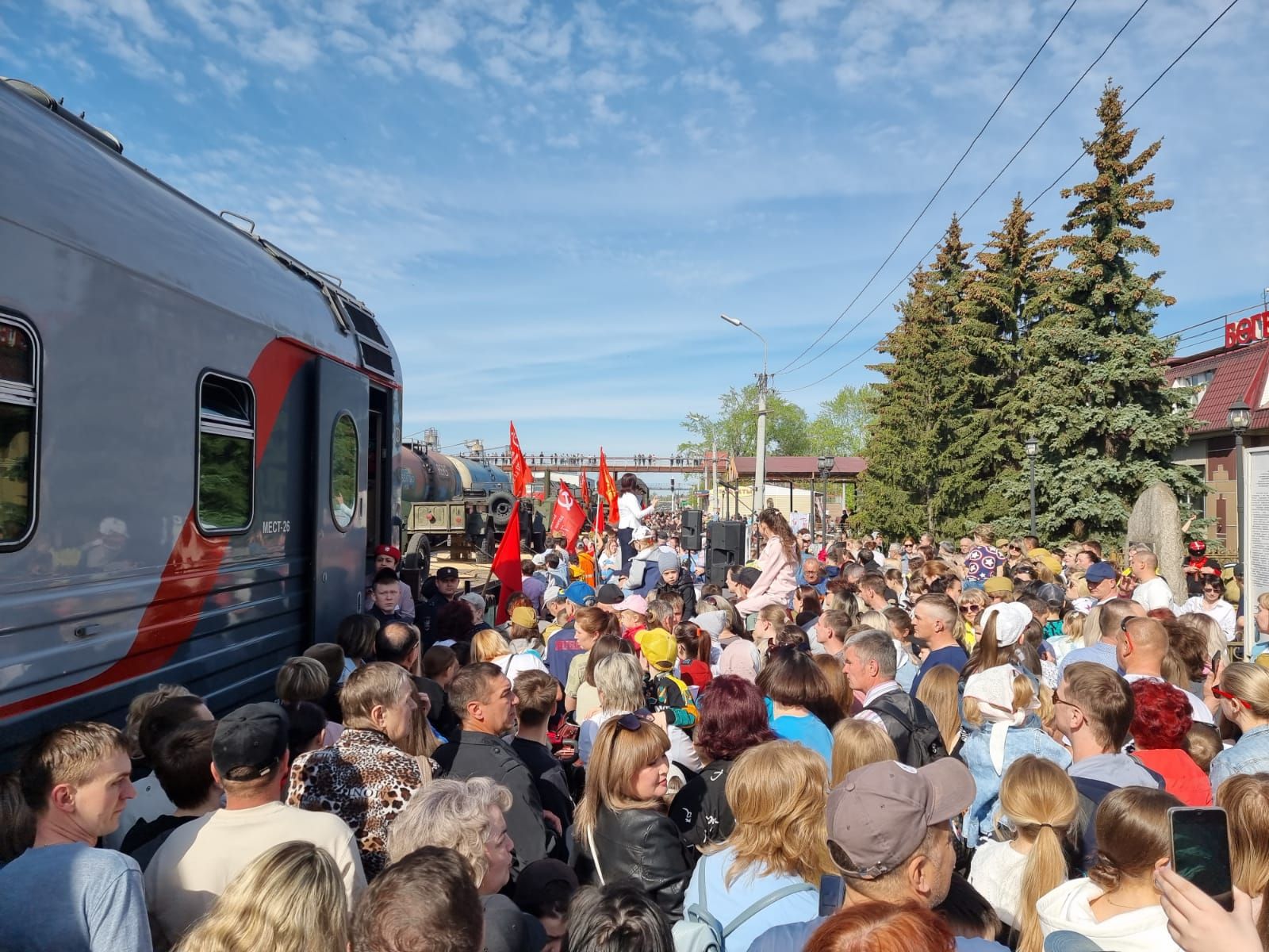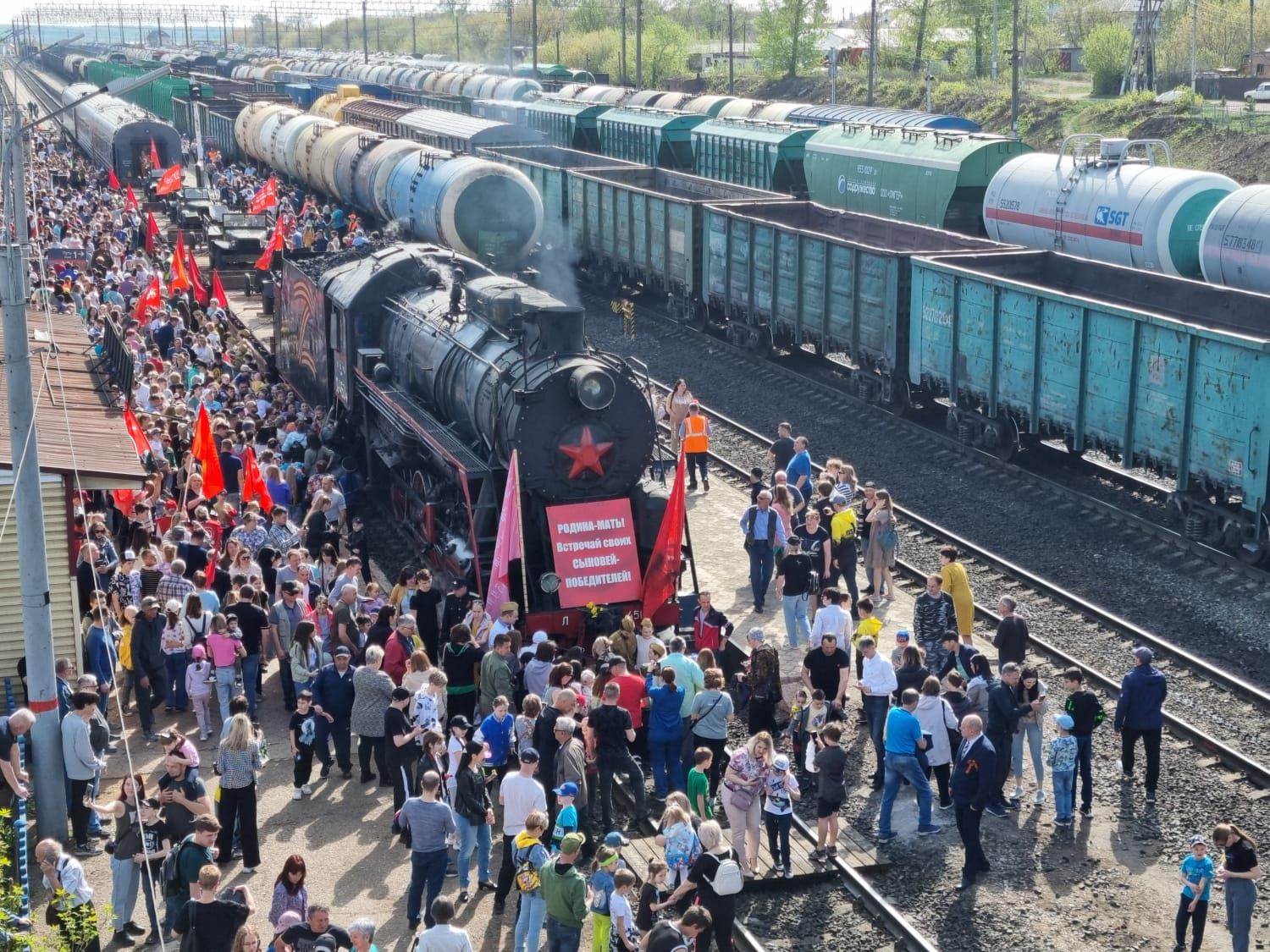 Железнодорожная станция Бугульма стала второй остановкой в пути после Уфы и первой в Татарстане на праздничном маршруте ретро-состава «Паровоз Победы».