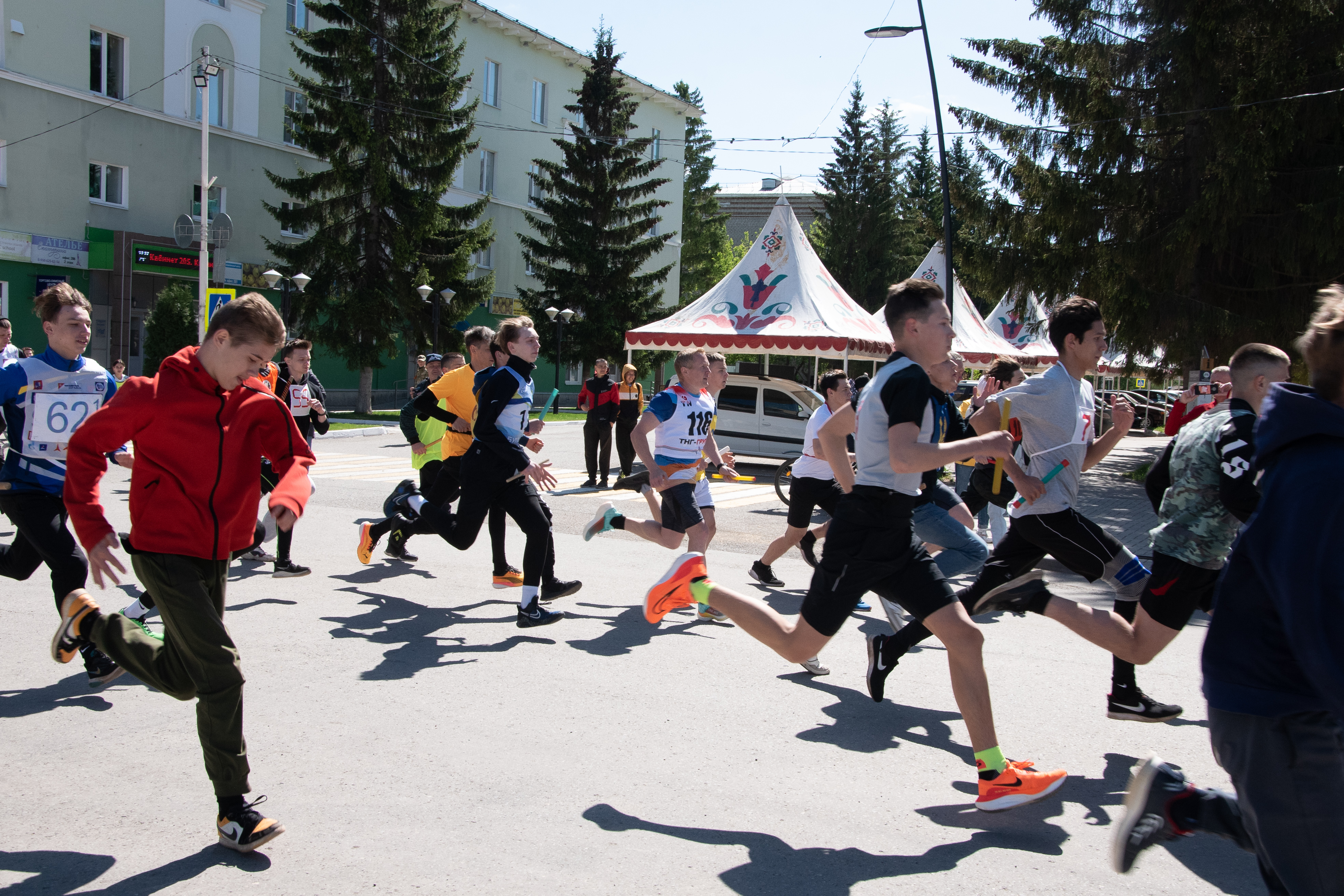 За победу боролись 370 человек. 21 женская команда бежала 7 этапов эстафеты, 25 мужских команд преодолели 9 этапов. Это представители предприятий и общеобразовательных учреждений, общественных организаций. Старт был дан на центральной площади города, финиш эстафеты состоялся у мемориала Вечной Славы.