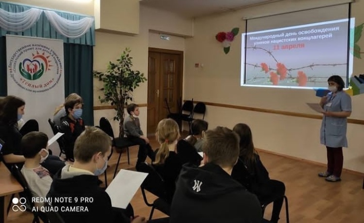 В социальном приюте для детей и подростков "Теплый дом" прошел познавательный час "Бухенвальдский набат" ко Дню освобождения узников фашистских концлагерей.