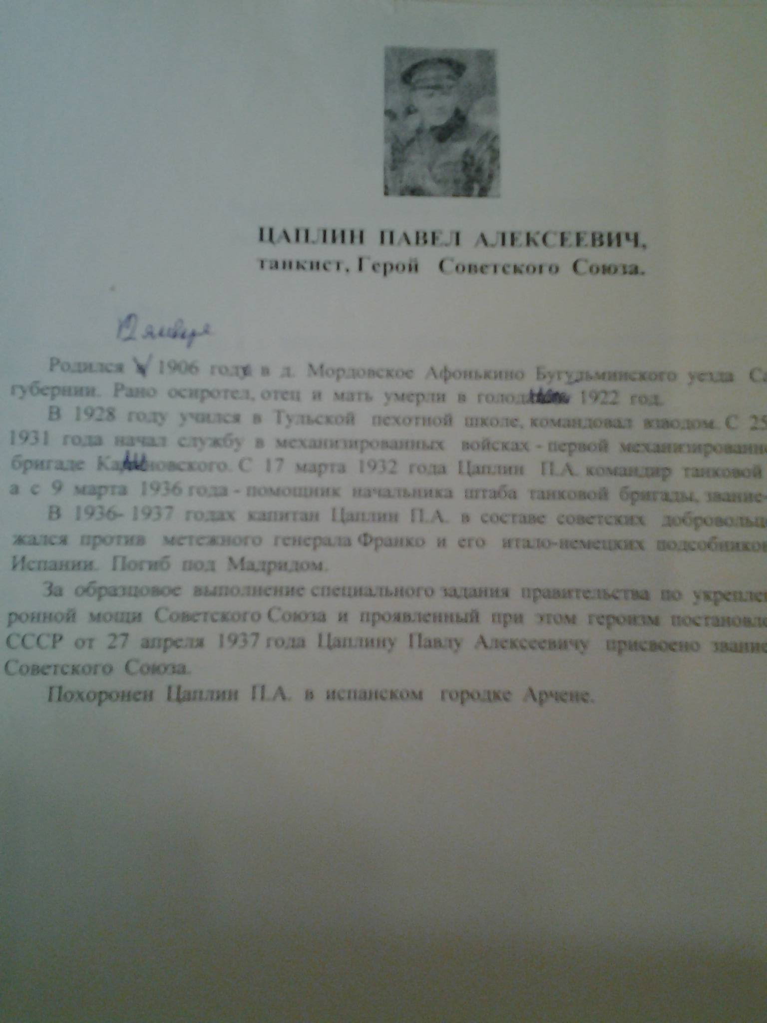 Цаплин Павел Алексеевич- им гордится Черемшан
