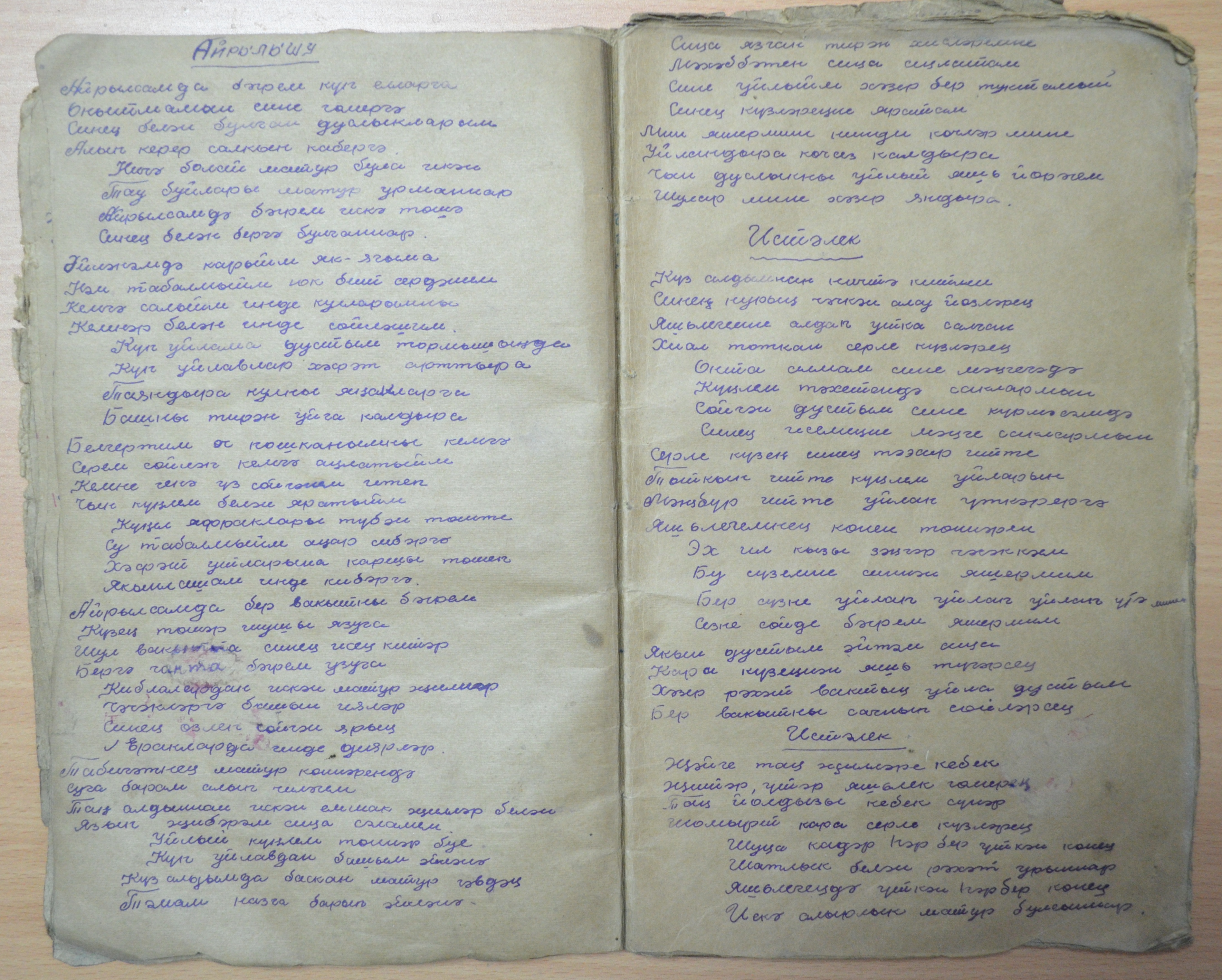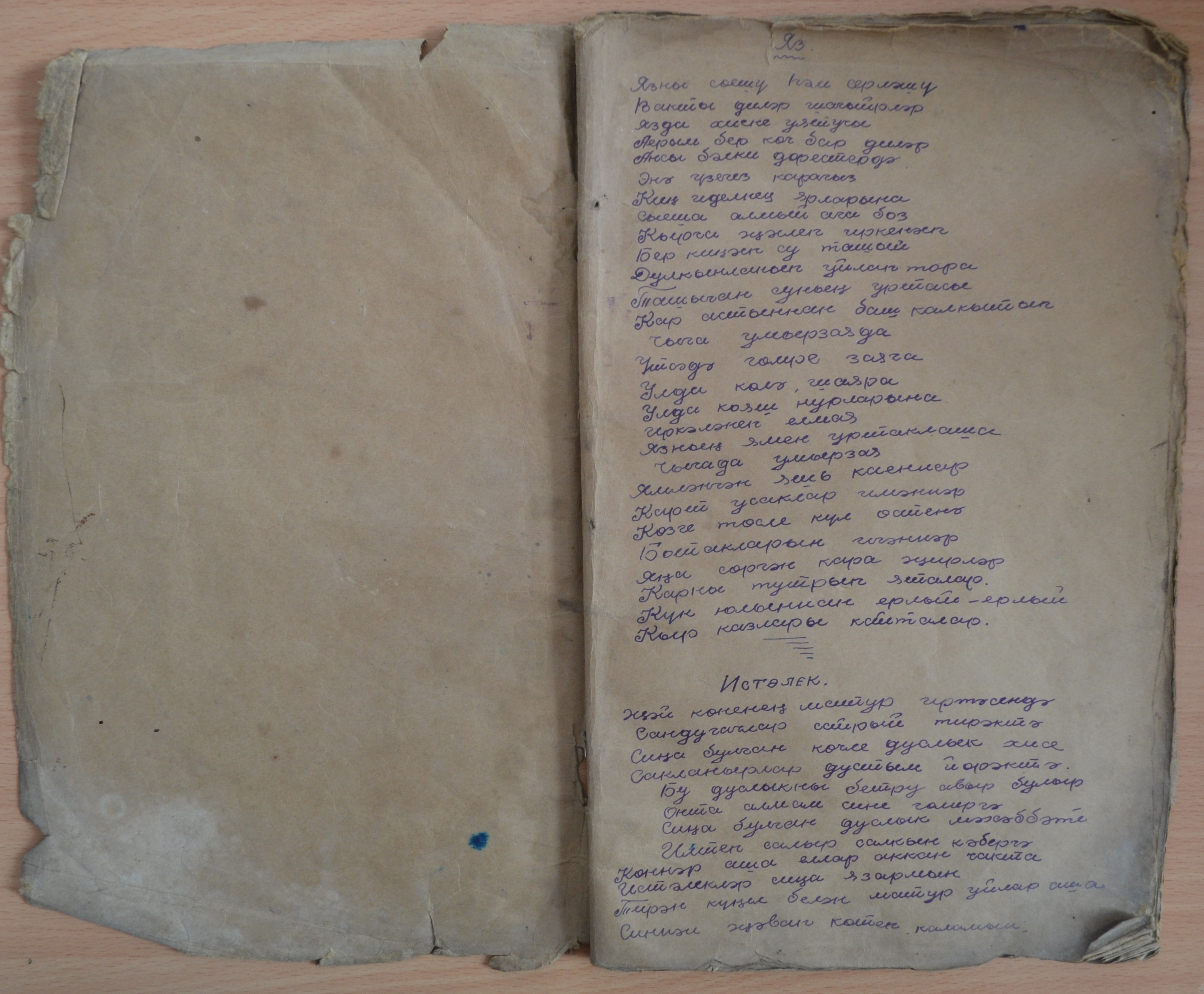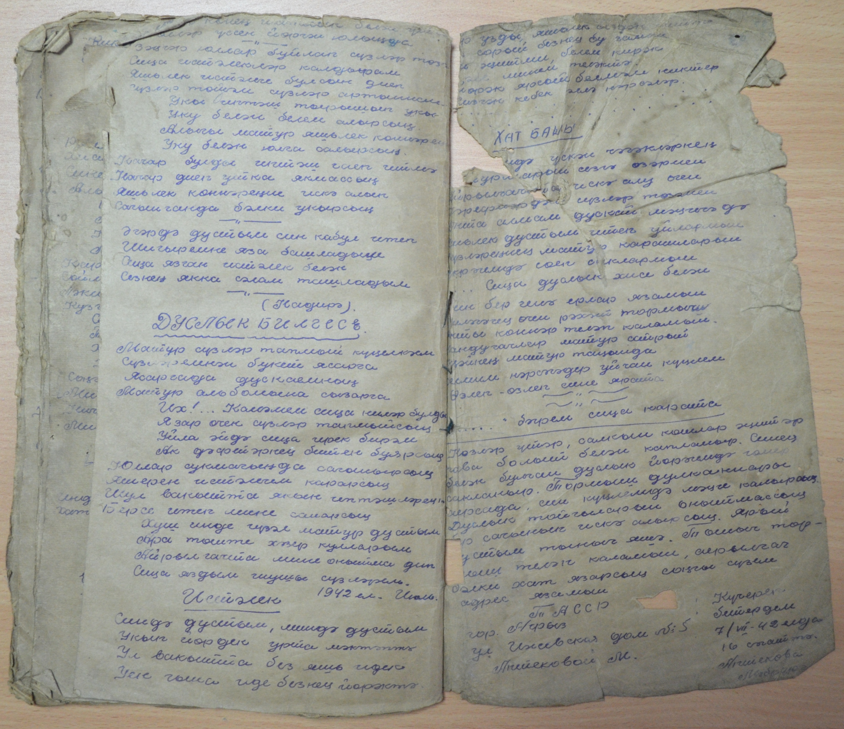Тетрадь принадлежала 17-летней Мабрузе, которая в 1942 году училась в 10 классе. Большинство стихов написано в виде воспоминаний. Не секрет, большинство мемуаров оформляется в прозе, а тут мы видим стихотворный жанр. В своих стихах девушка пишет о любви к молодому человеку. В них отражены грусть и тоска. По всей вероятности, суженый девушки ушел на фронт, и она пишет о том, как скучает по нему, как сильно желает, чтобы он победил врагов и вернулся к ней живым и невредимым. Строка последнего стихотворения «Ты остался лежать в земле чужой» указывает на то, что молодой человек погиб, и ей об этом сообщили...