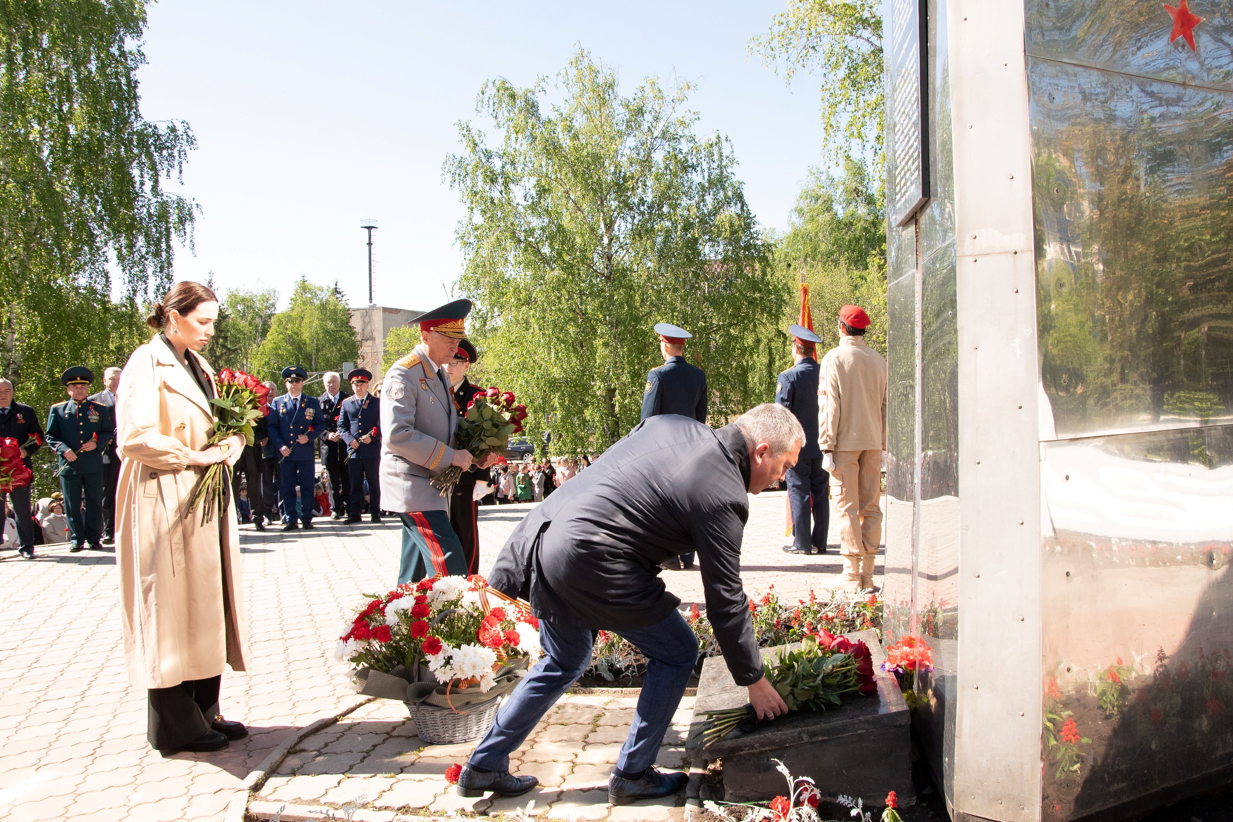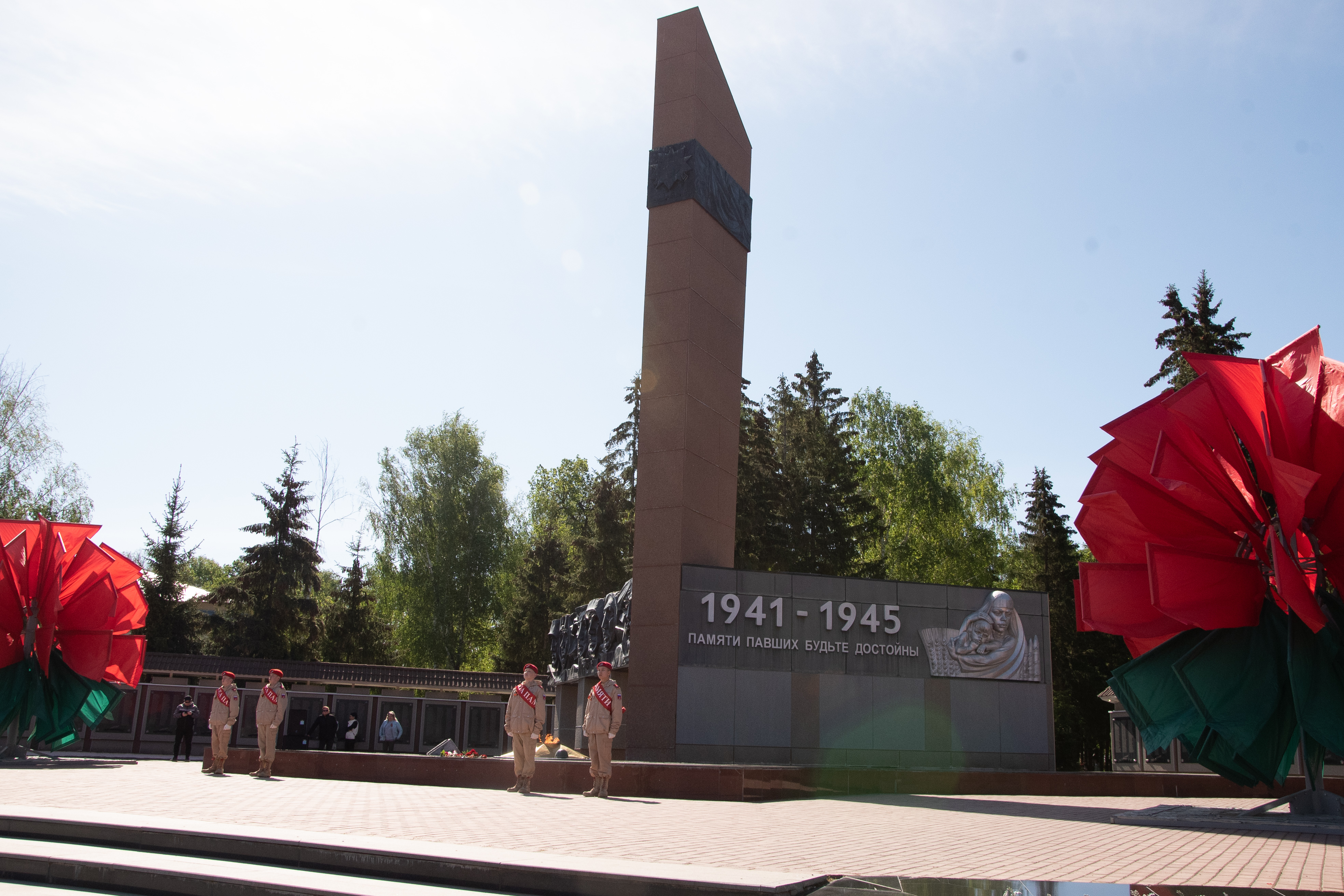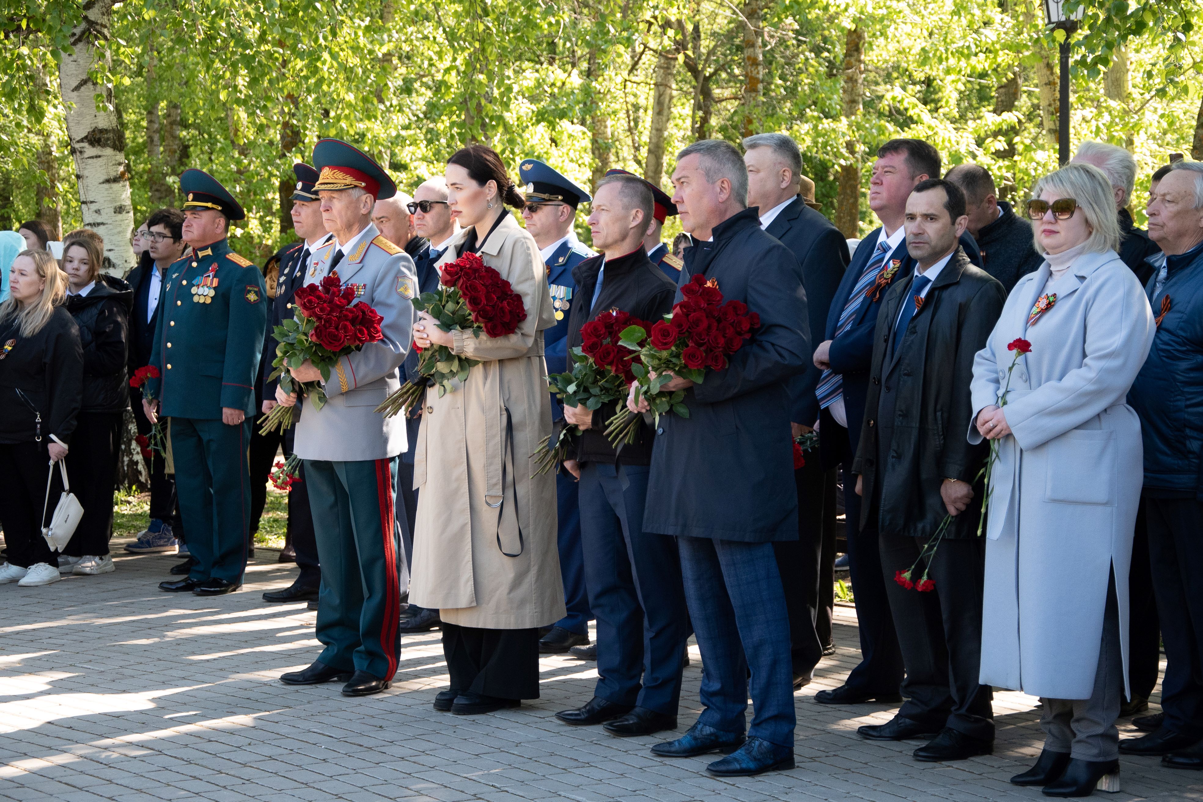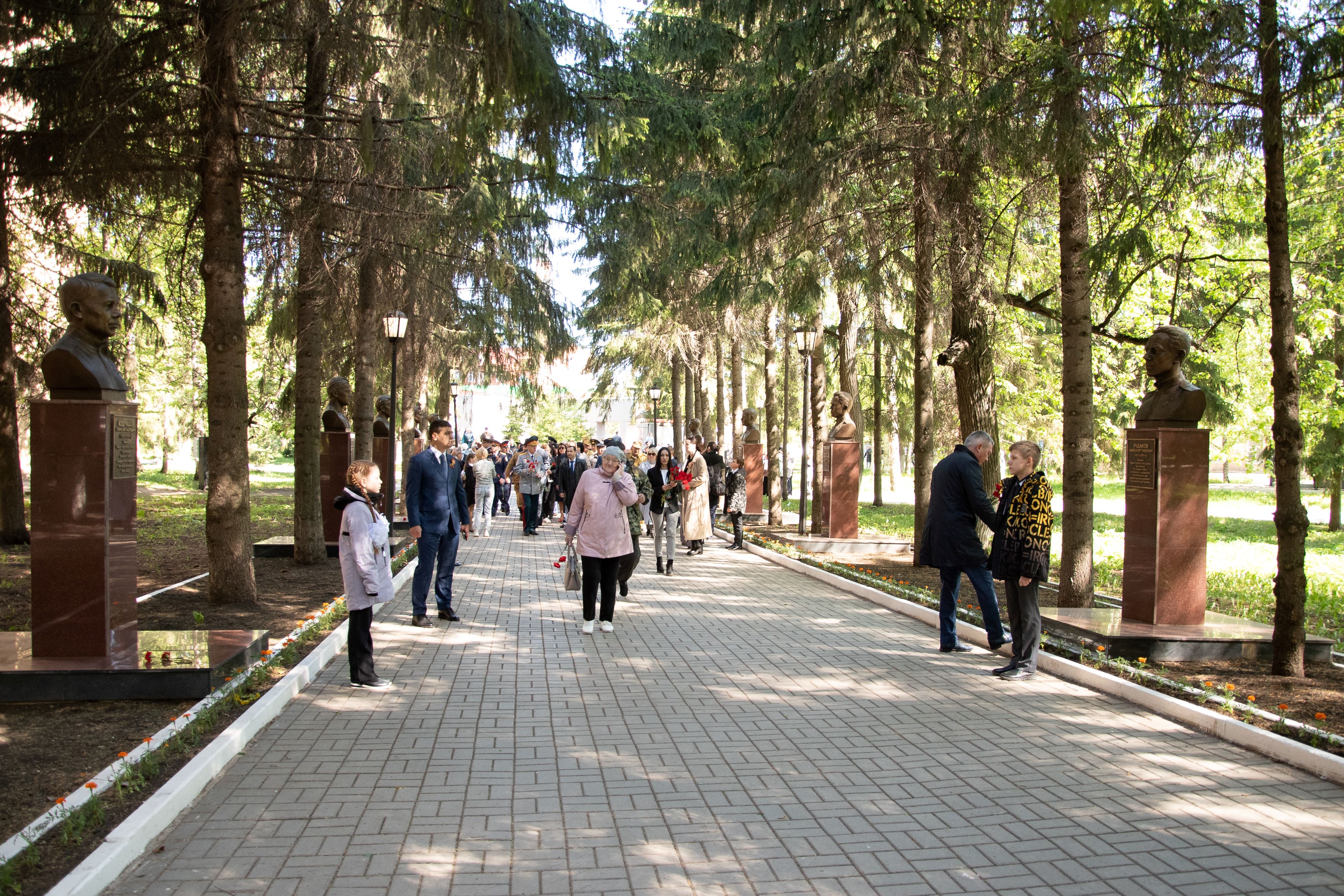 Церемонии возложения цветов прошли в парке культуры и отдыха на улице Красноармейской у мемориала памяти, у стелы 352-й стрелковой дивизии, у мемориала Вечной славы и на аллее Героев.