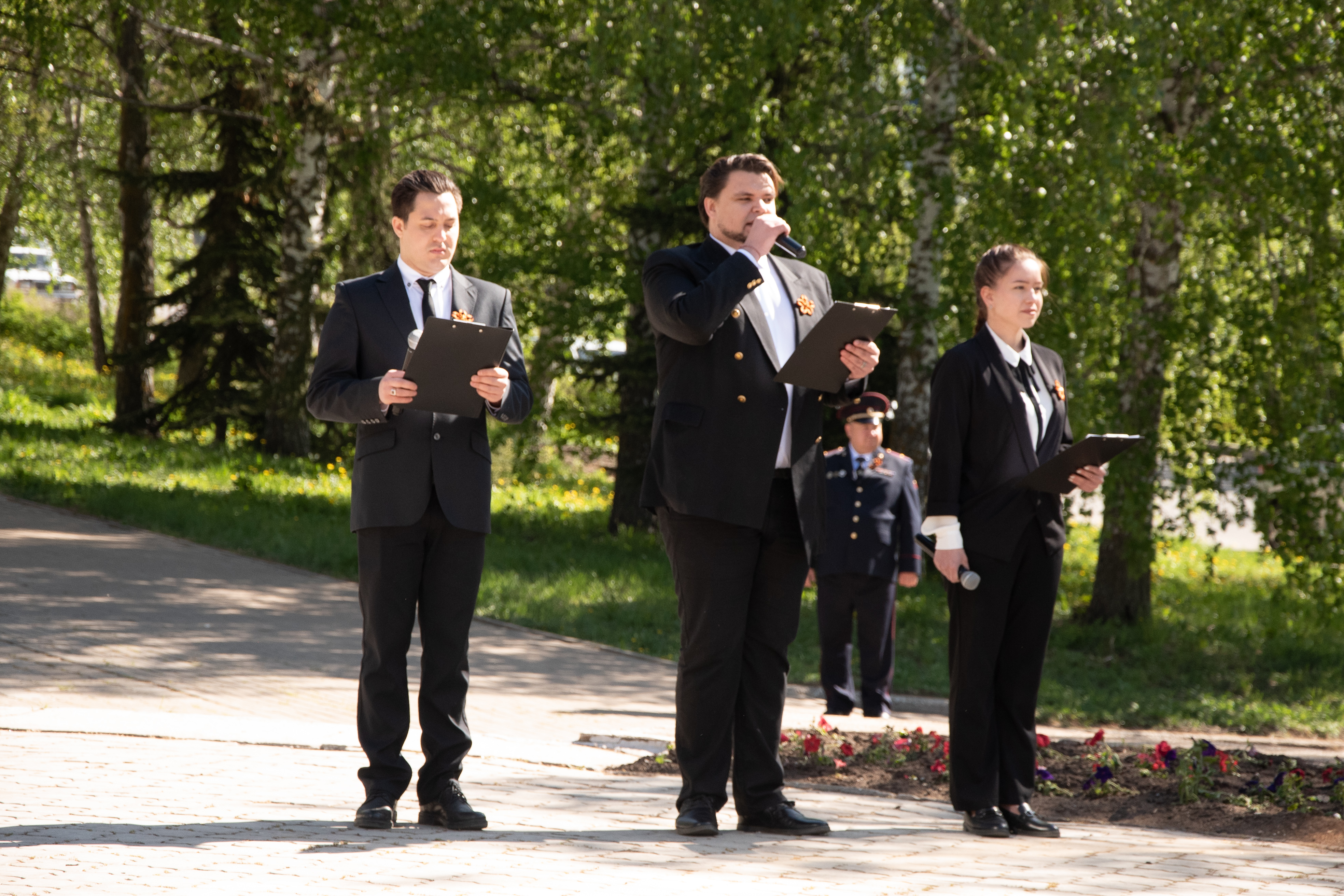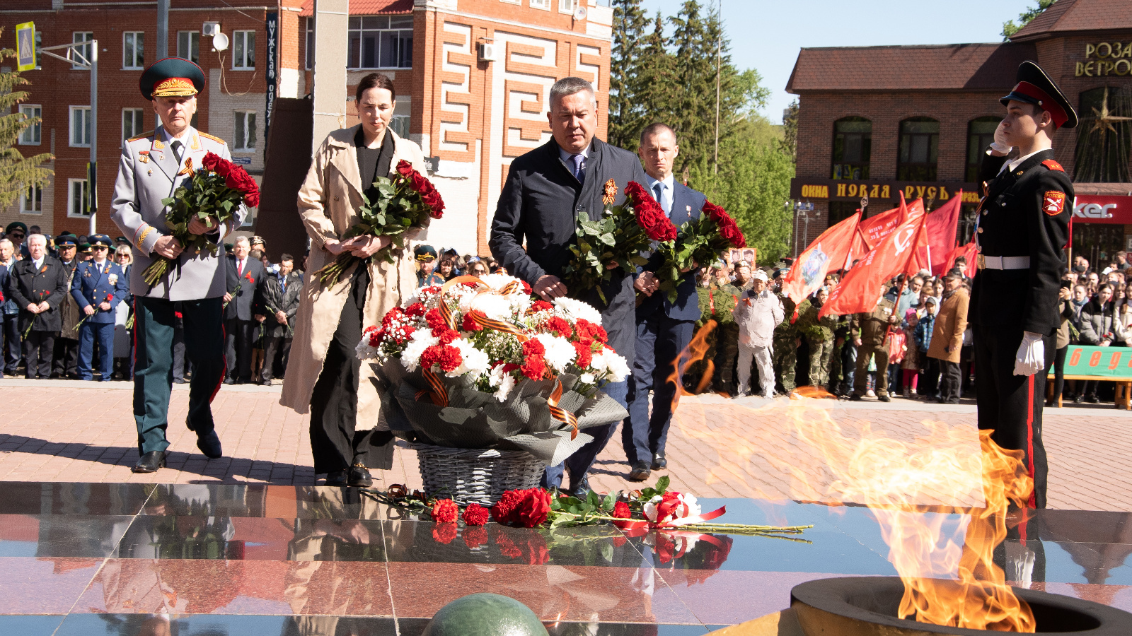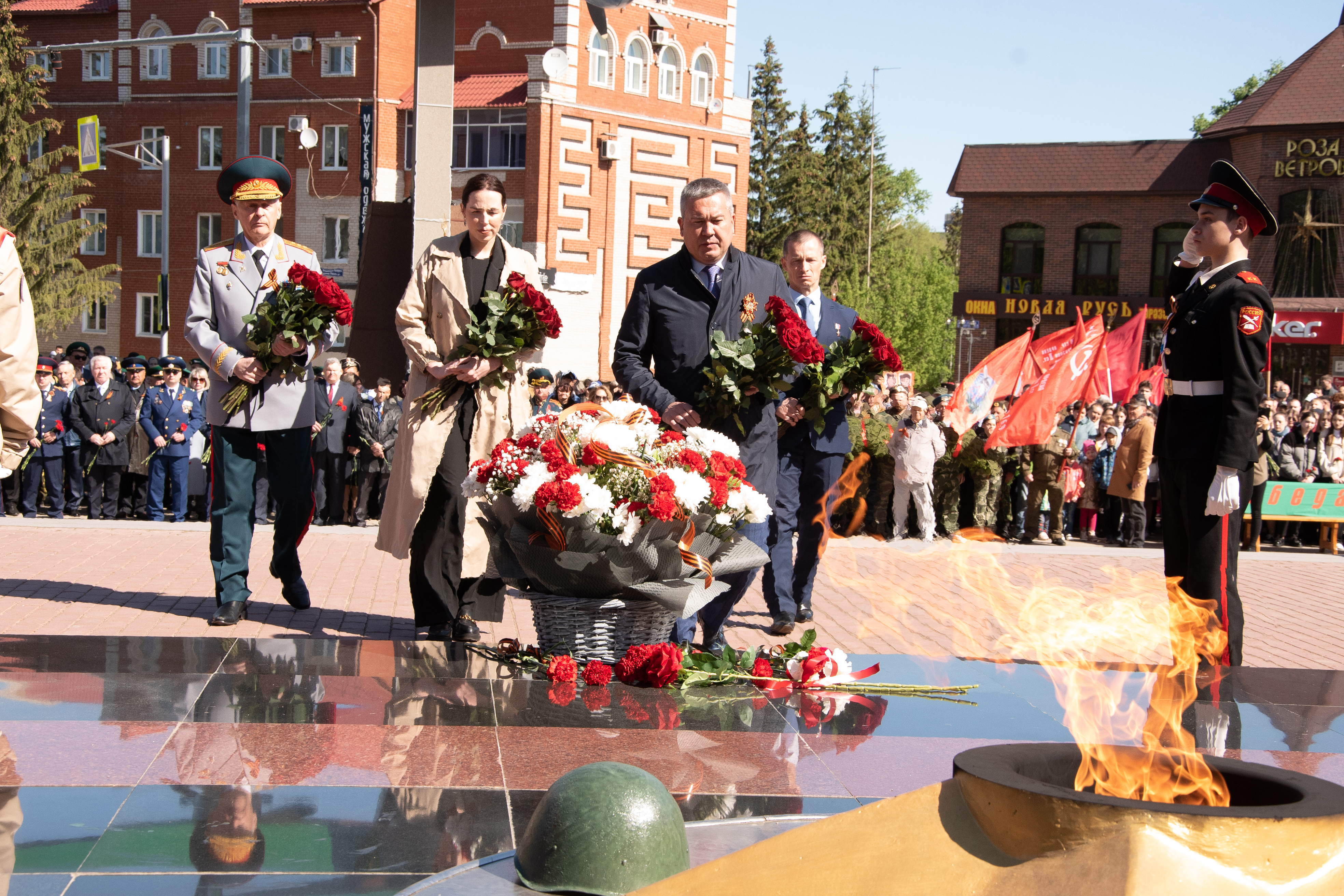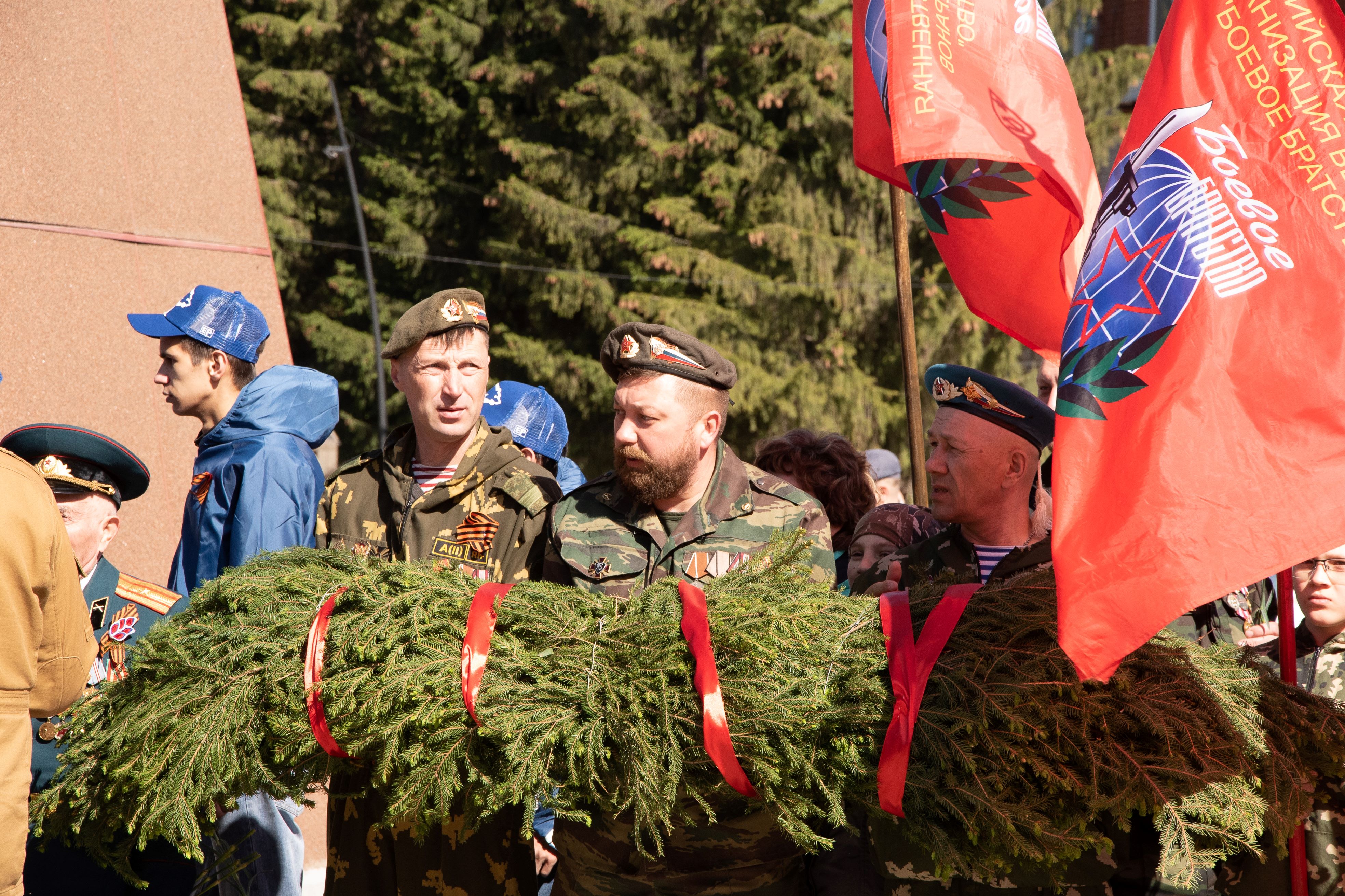 Церемонии возложения цветов прошли в парке культуры и отдыха на улице Красноармейской у мемориала памяти, у стелы 352-й стрелковой дивизии, у мемориала Вечной славы и на аллее Героев.