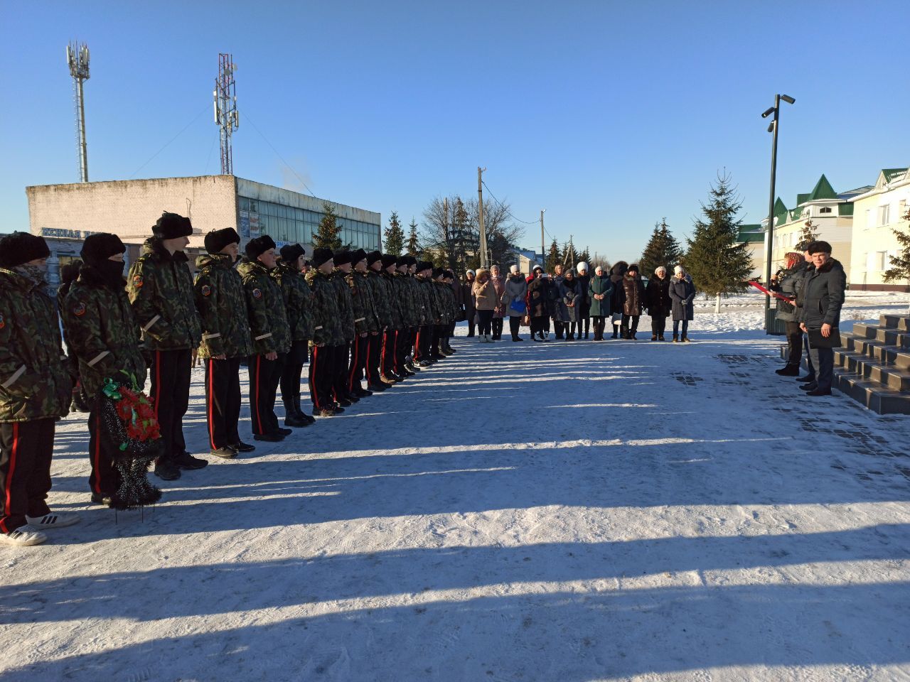 Первый заместитель руководителя Исполнительного комитета Шайдуллин И. Н., Заместитель руководителя Управления Федерального казначейства РТ Кобелев И. Г. призвали не забывать и гордиться подвигами русского солдата. Заместитель руководителя Исполнительного комитета по социальным вопросам Муксинова Л.В., исполняющая обязанности начальника отдела культуры Иляева Н.В, учащиеся Черемшанской кадетской - школы интернат приняли участие в торжественном возложении венков к Вечному огню, как дань памяти и уважения. Память погибших почтили минутой молчания.