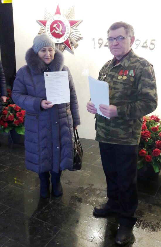 В присутствии участников митинга были вручены извещения племяннику и внучке двоих солдат, считавшихся пропавшими без вести. Сведения о них найдены активистами Ассоциации "Клуб Воинской Славы".