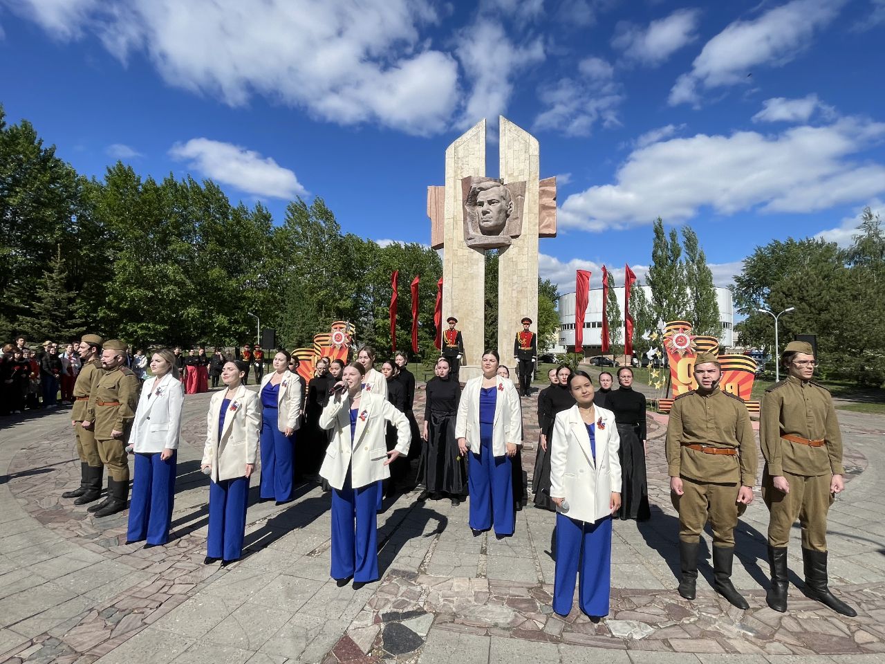 В ходе праздничного мероприятия на русском и татарских языках прозвучали произведения Мусы Джалиля, песни «Непрошенная война» и «Россия была! Россия есть! Россия будет!» в исполнении солистов вокальной студии «Шарм», а также танцевальные композиции.