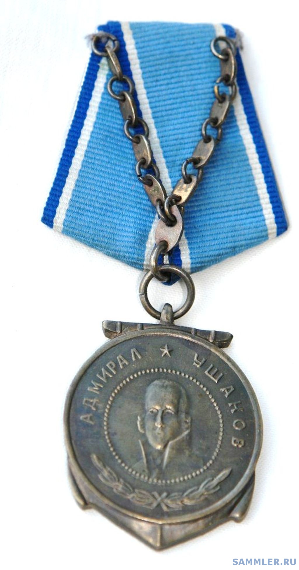 Медаль Ушакова – аналог медали “За отвагу” для рядового и сержантско-старшинского состава ВМФ, а также мичманов. От других советских медалей медаль Ушакова отличается тем, что поверх лицевой стороны колодочки на ней помещена миниатюрная якорная цепь, крепящаяся к ушку медали и верхним углам колодочки.