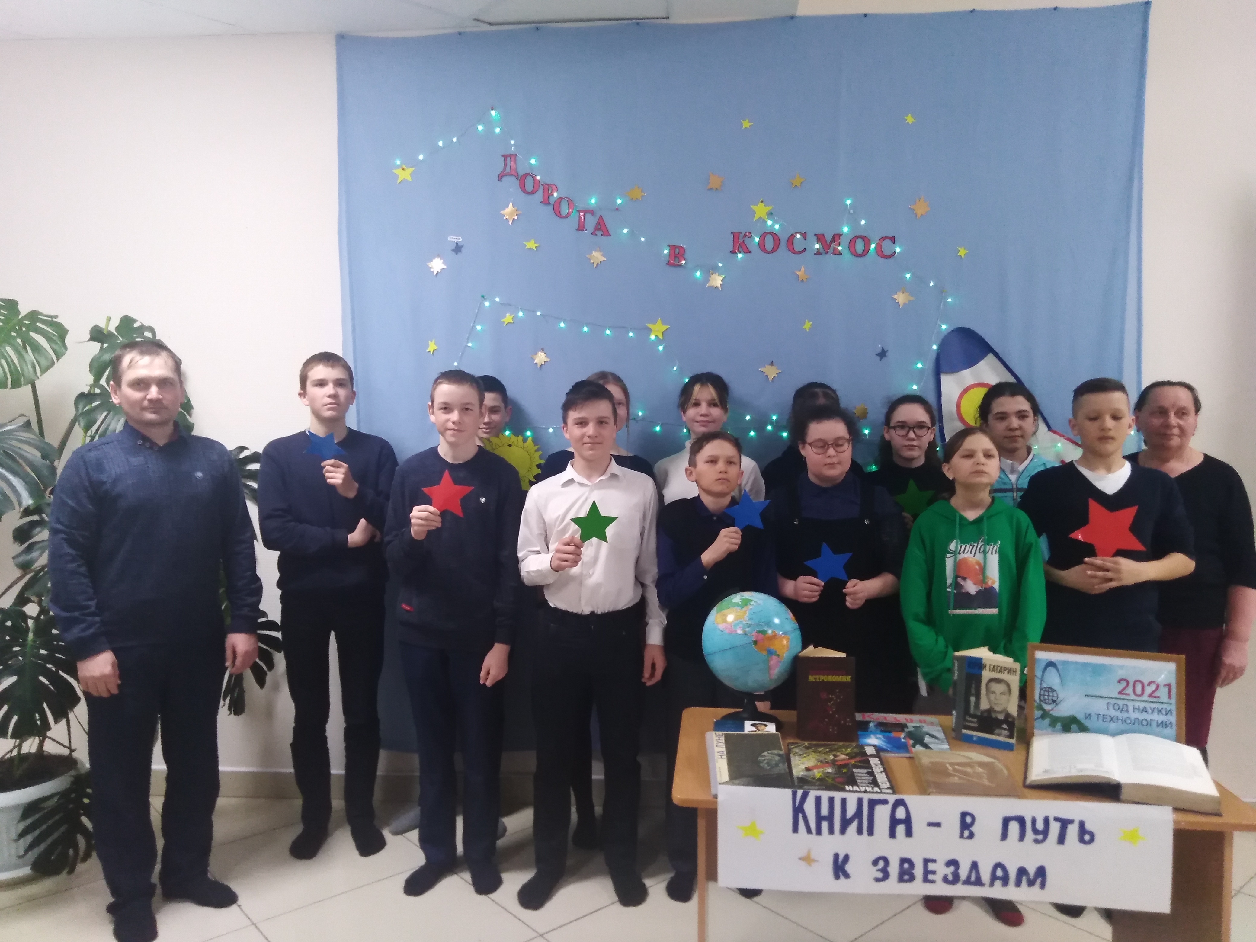 Познавательный час "Дорога в космос", посвященный 60-летию первого полёта человека в космос с учащимися Убеевской средней школы.